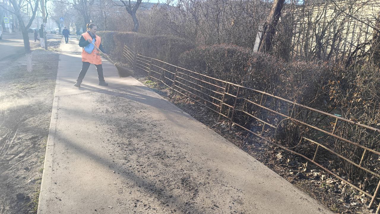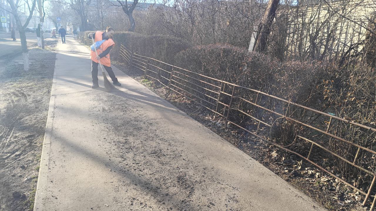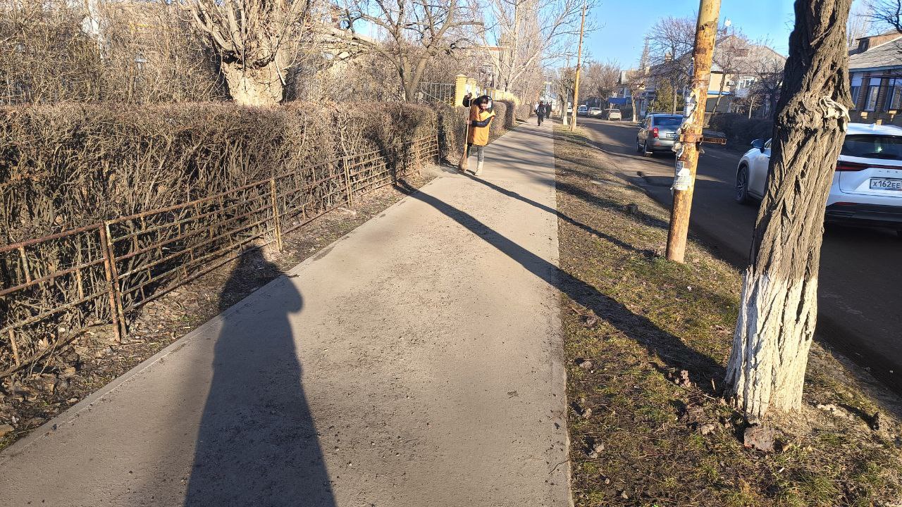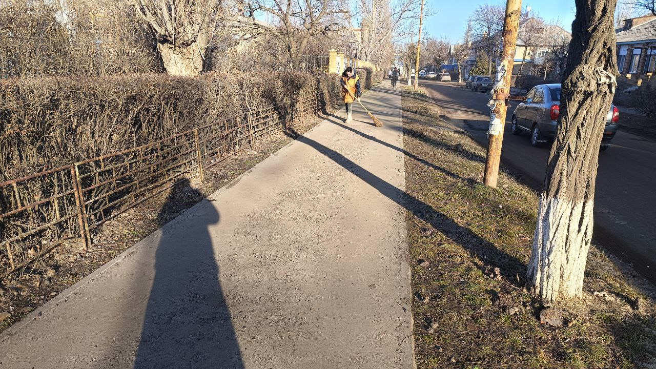 Весенняя уборка в Лутугино: сотрудники «Лутугиножилфонда» наводят порядок на тротуарах