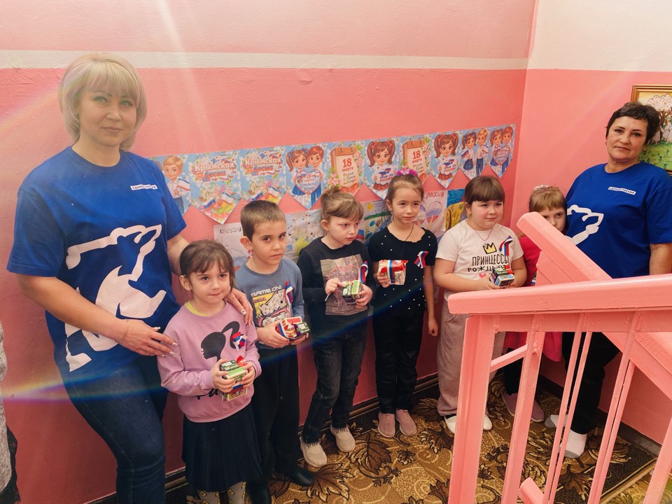 Активисты первичного отделения №16 села Дьяково партии «Единая Россия» совместно с членами Антрацитовского местного отделения Союза женщин России провели акцию в ясли-саду «Берёзка», приуроченную к 12-й годовщине начала Русской весны.
