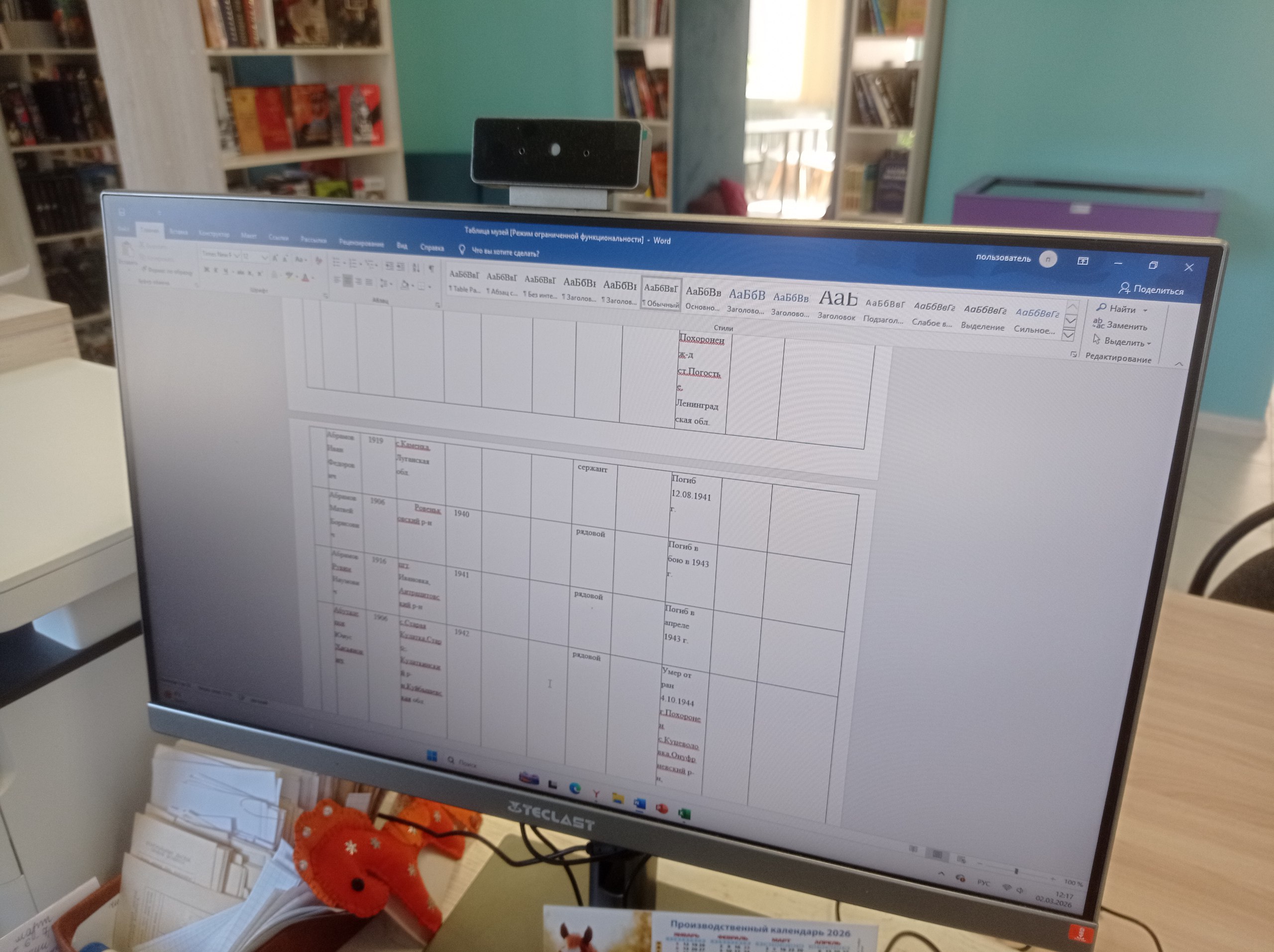 Для внесения данных в электронную Книгу Памяти Российской Федерации на сегодняшний день в музей истории города Ровеньки предоставлены биографии ветеранов школьными музеями: