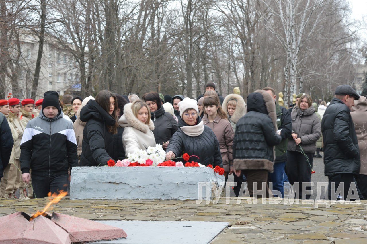 В завершение митинга присутствующие минутой молчания почтили память бойцов, погибших при выполнении воинского долга, и возложили цветы к подножию мемориала «Скорбящая мать».