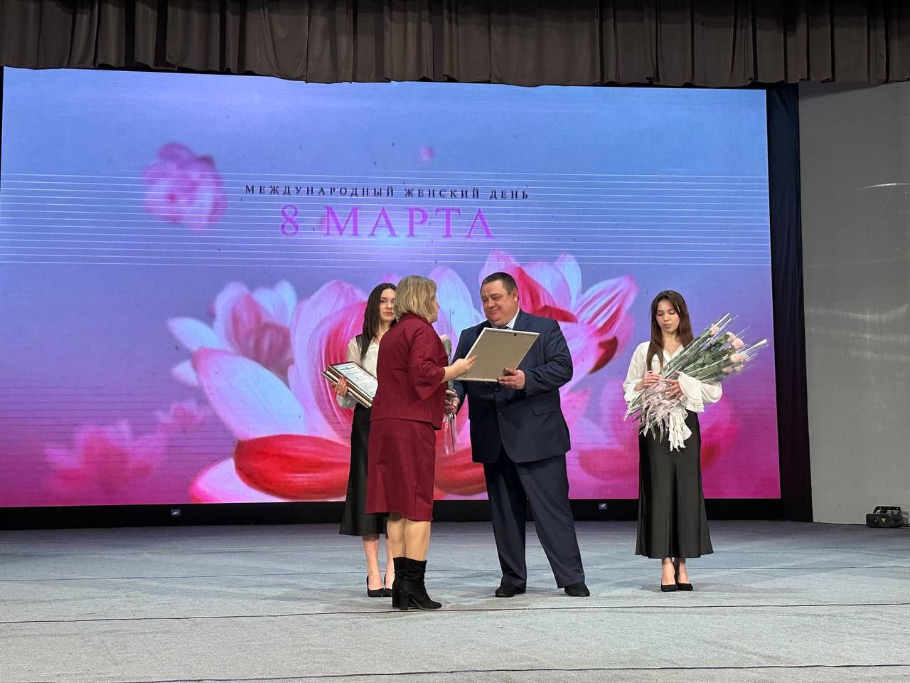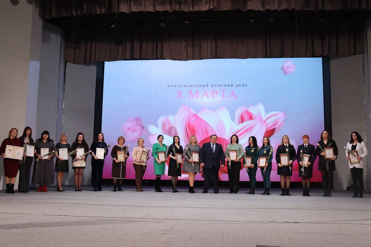 Вместе с почетными гостями праздника выразили присутствующим в зале женщинам слова благодарности за мудрость, красоту, профессионализм и успехи в труде, за то, что даже в самые непростые времена вы, женщины, остаётесь чуткими, нежными и стойкими.