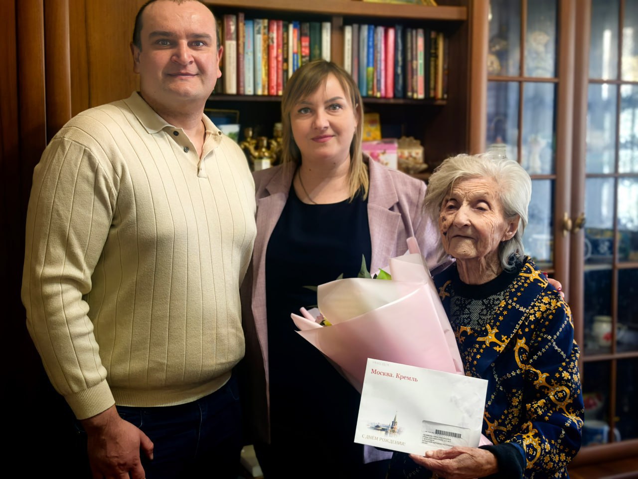В этот знаменательный день поздравить именинницу пришли представители Администрации Краснодонского муниципального округа. Начальник управления внутренней политики передала Нине Григорьевне персональное поздравление от Президента Российской Федерации Владимира Владимировича Путина, а также вручила цветы и подарки от Администрации округа.