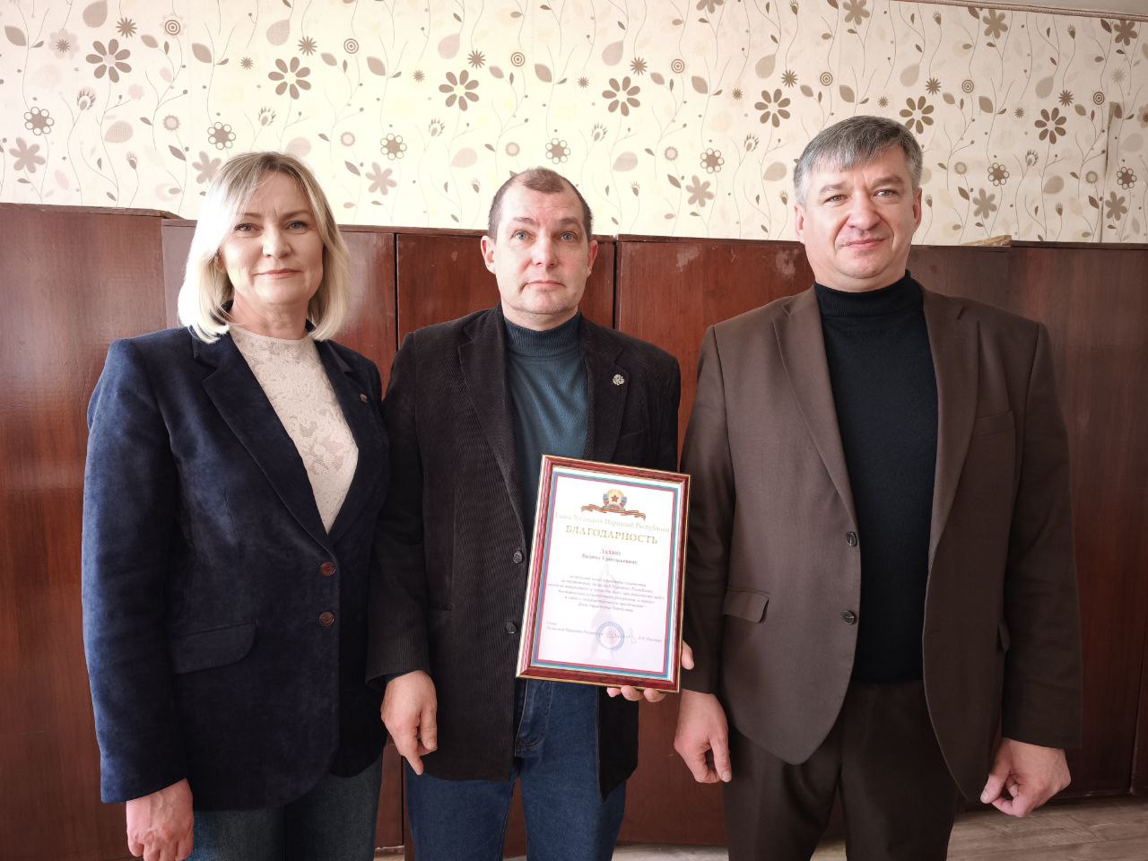 «Дорогие коллеги, на базе СШ№9 планируется создание молодежного крыла нашего городского казачества. Инициатором выступил учитель школы Вадим Григорьевич Лахно. Он также является начальником штаба городского казачьего общества. Сегодня его деятельность отмечена на республиканском уровне»,Он вручил Вадиму Григорьевичу Благодарность Главы ЛНР Леонида Пасечника за весомый вклад в развитие казачества на территории Луганской Народной Республики.- рассказал Андрей Гриценко.