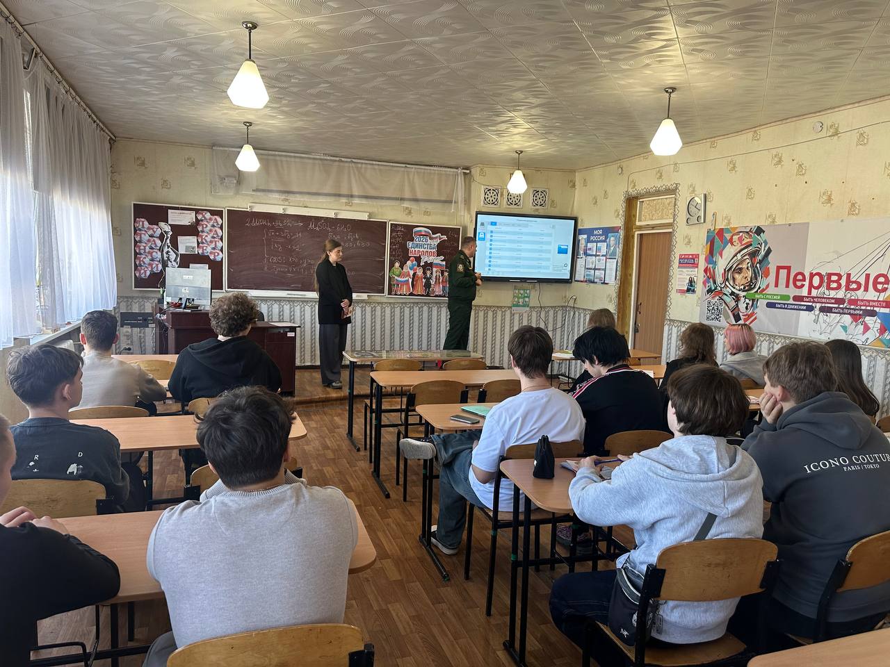 Главный специалист отдела спорта и молодежи Администрации Краснодонского муниципального округа Виолетта Сычёва совместно с начальником отделения ППГ ВС Военного комиссариата Краснодонского района лейтенантом Евгением Вороным в рамках Всероссийской профориентационной акции «Есть такая профессия – Родину защищать!» провели выездные мероприятия в школах муниципального округа: