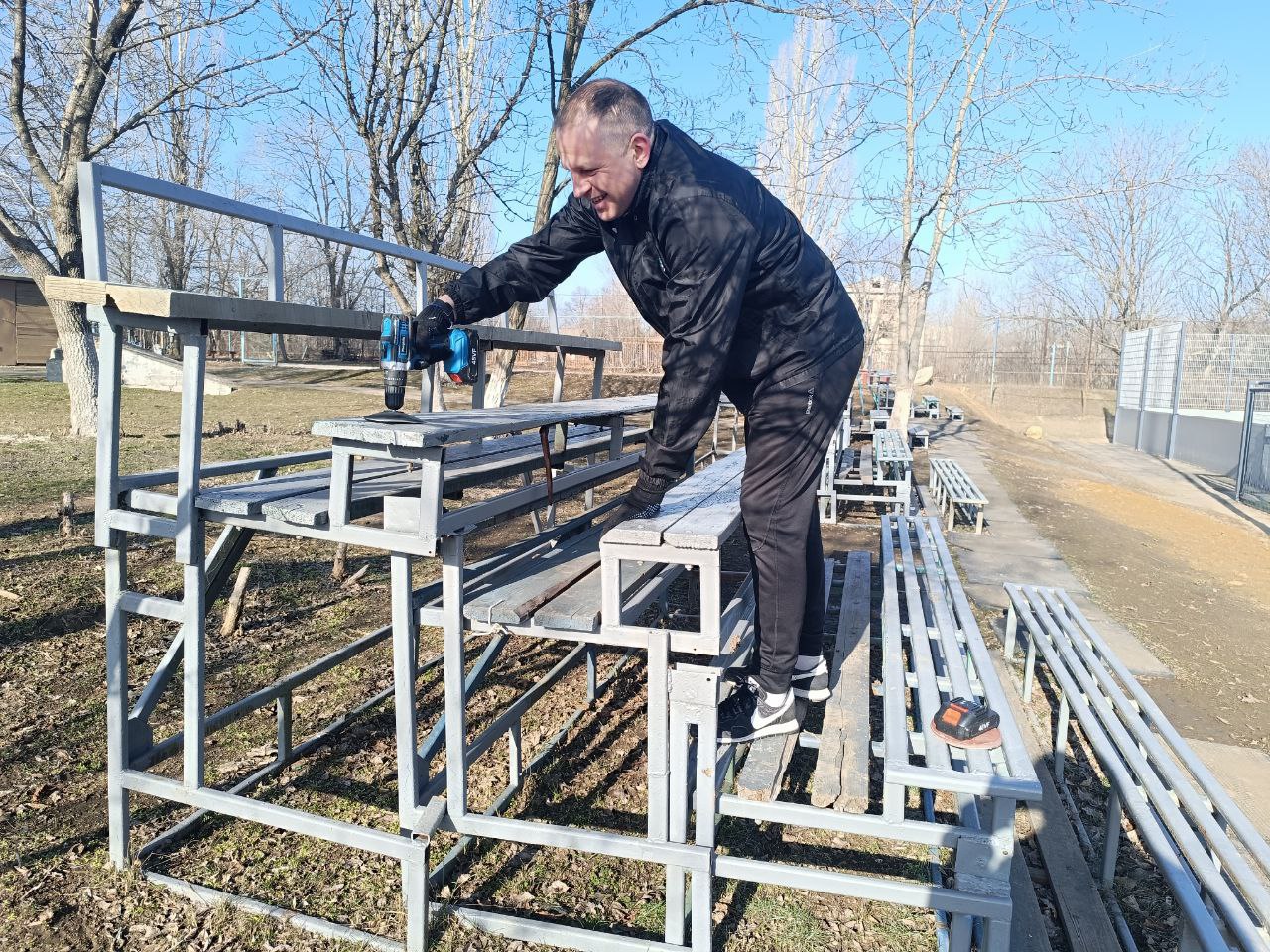 Сотрудники Краснодонского стадиона с энтузиазмом приступили к подготовке к новому спортивному сезону. Команда работала активно и организованно, тщательно очищая территорию после зимы. Солнечная погода придала бодрости и отличное настроение для продуктивного труда!