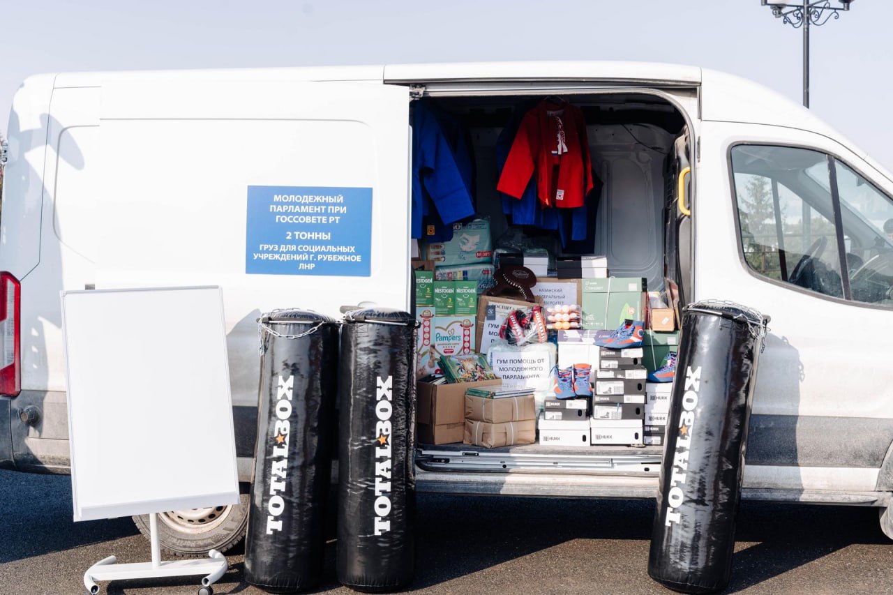 Отправляет свою партию помощи и молодёжный парламент при Госсовете РТ. В этот раз в социальные учреждения передадут не только традиционный список канцелярии, но и методики по работе с молодежью, кимоно для занятий самбо и футбольную форму.