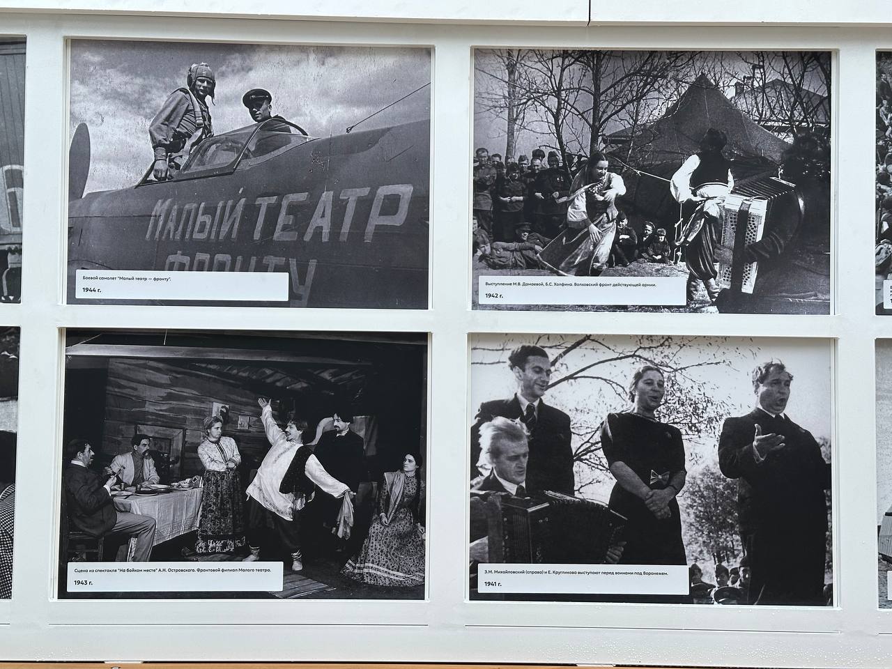 Вместе с присутствующими на мероприятии ровенчанами ознакомились с уникальными архивными фотографиями, запечатлевшие моменты из жизни театрального мира в годы ВОВ. Эти снимки показывают, как искусство становилось настоящим оружием. Талант и преданность артистов укрепляли веру в победу. Как в те годы, так и сейчас, деятели искусств не боятся выступать на передовой, в госпиталях для наших защитников.