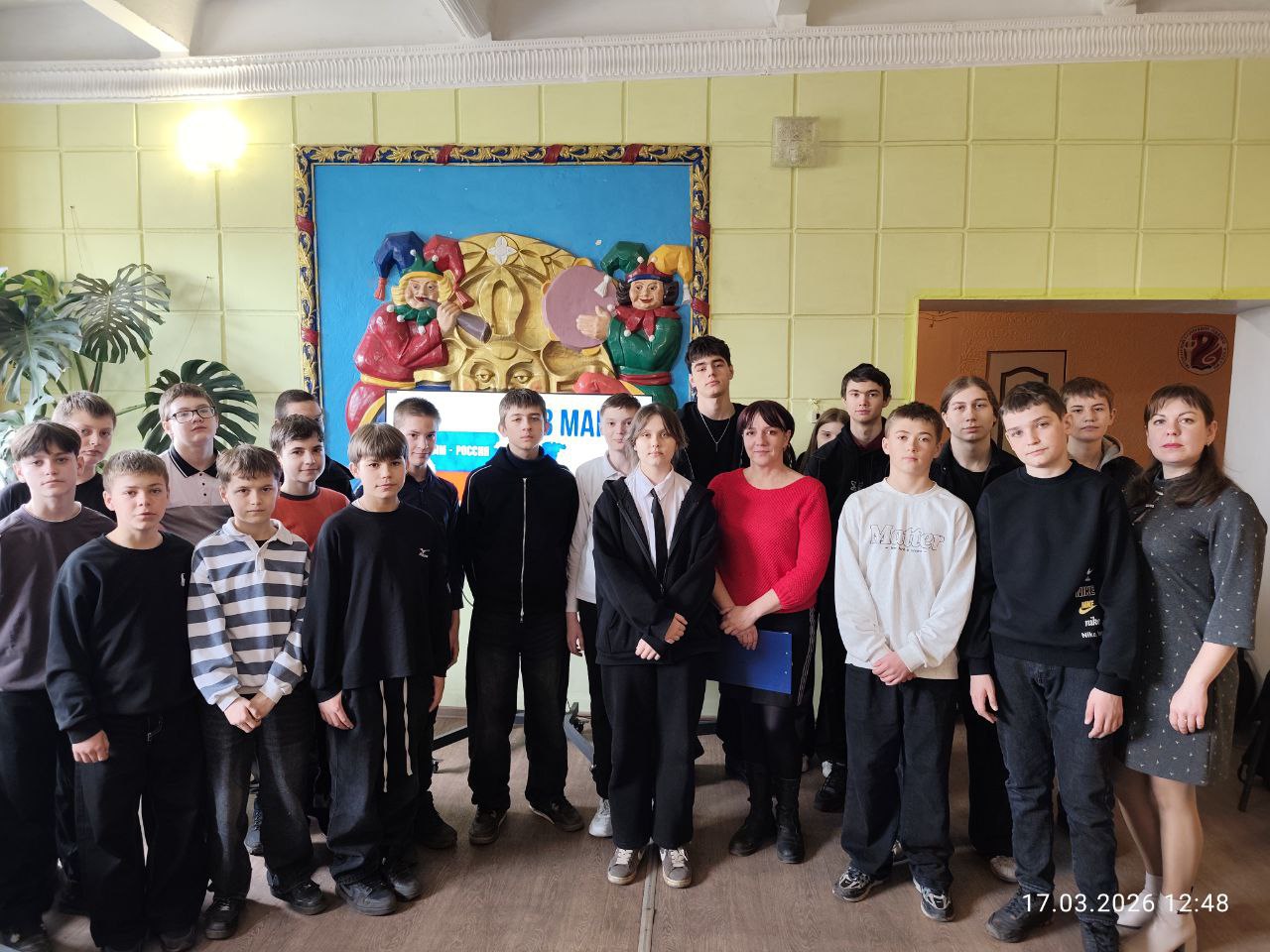 17 марта в Фащевском клубе "Горняк" для учащихся 7-х и 11-х классов Фащевской СШ № 24 прошел патриотический час, посвященный знаменательной дате – воссоединению Крыма с Россией.