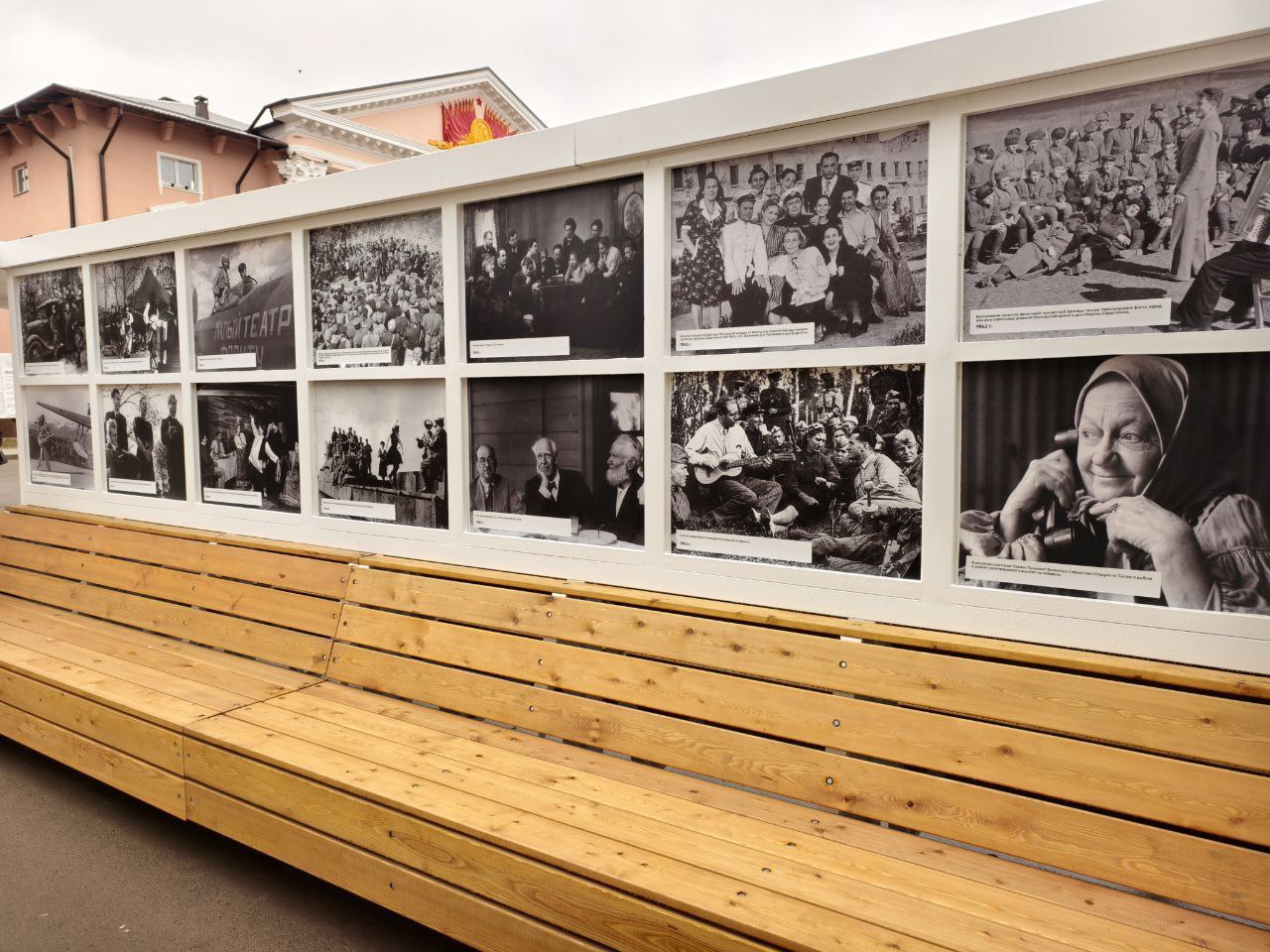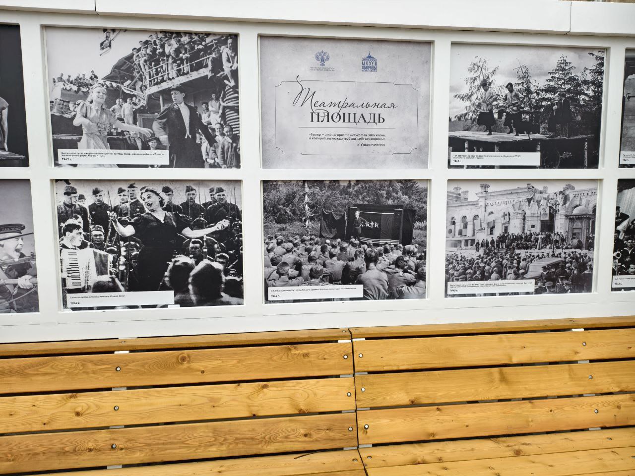 Выставкаинсталляция посвящена театральным коллективам времён Великой Отечественной войны. Своим искусством они поддерживали боевой дух солдат на фронте, тружеников в тылу. Она переносит зрителей в суровые военные годы с помощью увеличенных копий архивных фотографий.