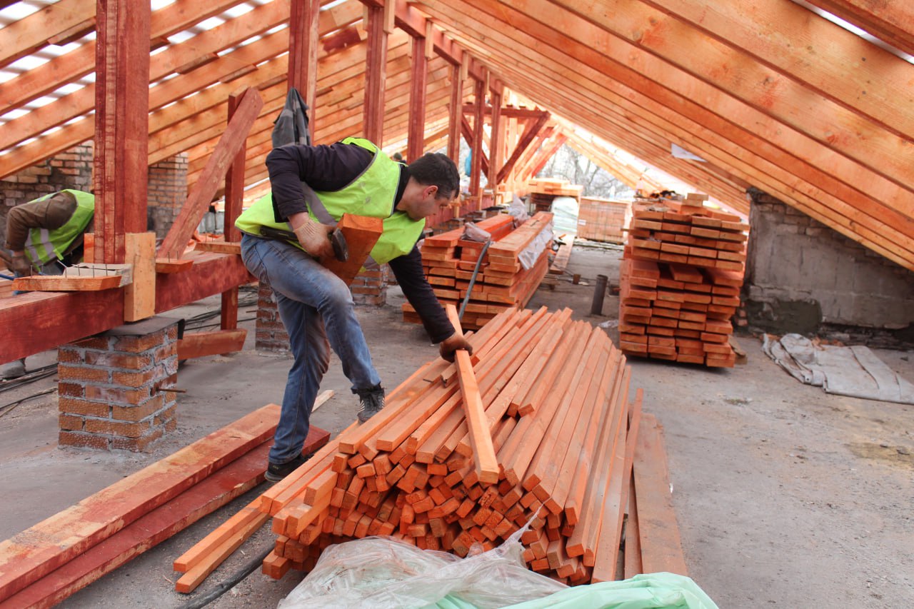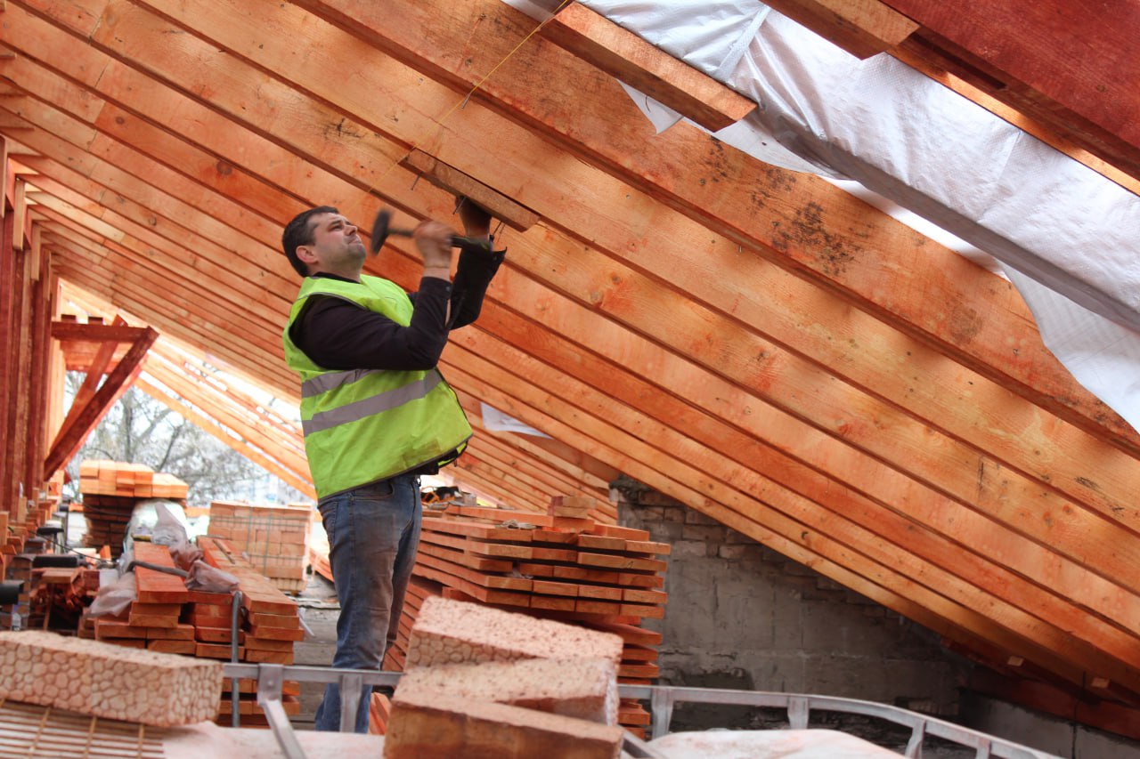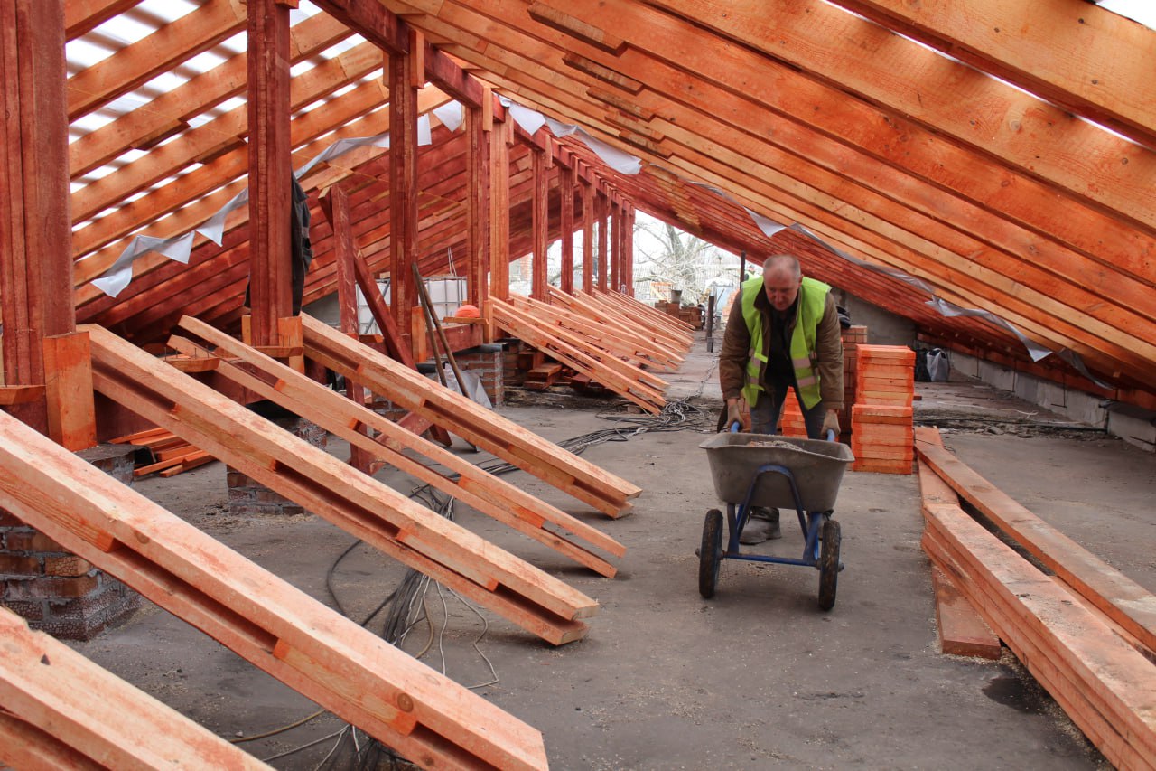 На кровле 4-го подъезда вышеуказанного дома строители выполнили комплекс демонтажных работ и произвели работы по устройству парапетов. На сегодняшний день специалисты ведут работы по устройству стропильной системы кровли.