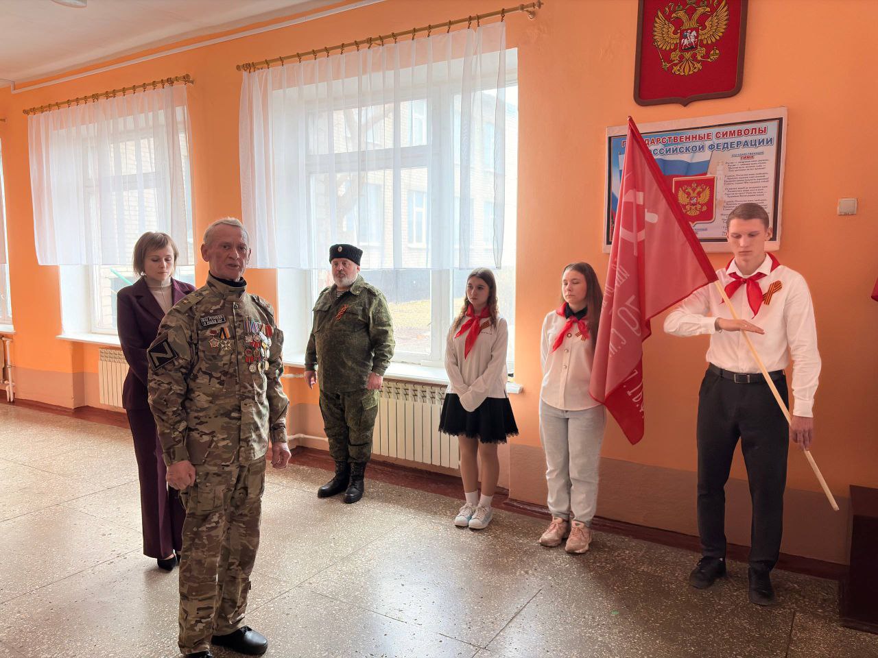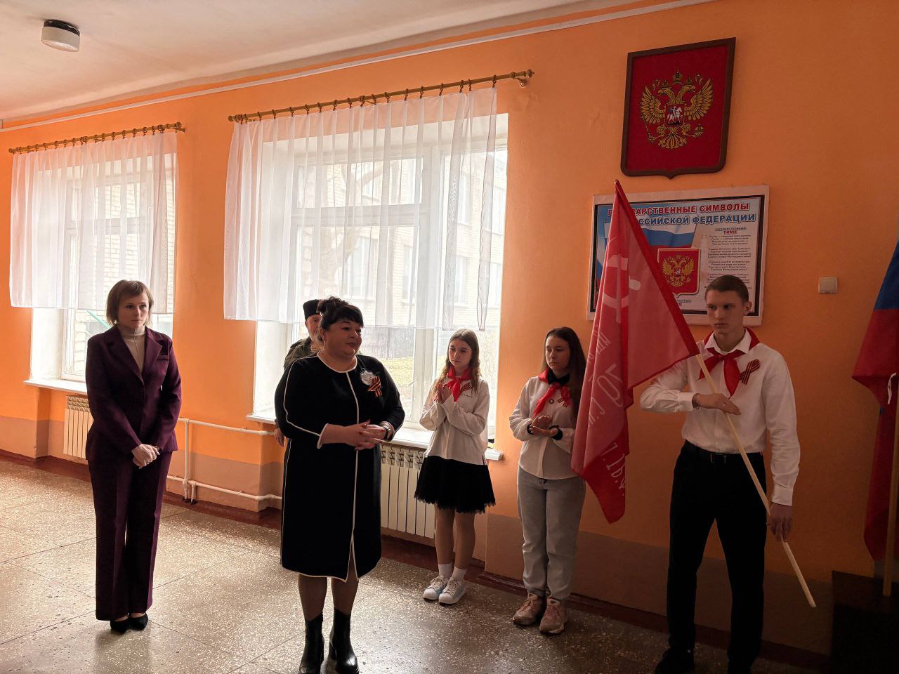 В мероприятии приняли участие почётные гости: начальник отдела по ОЖД пгт Комиссаровка Валентина Лазарева, председатель Перевальской местной организации ветеранов Тамара Белявская, , участник боевых действий в Чернухино-Дебальцевской операции и Афганистане Дмитрий Логачёв.
