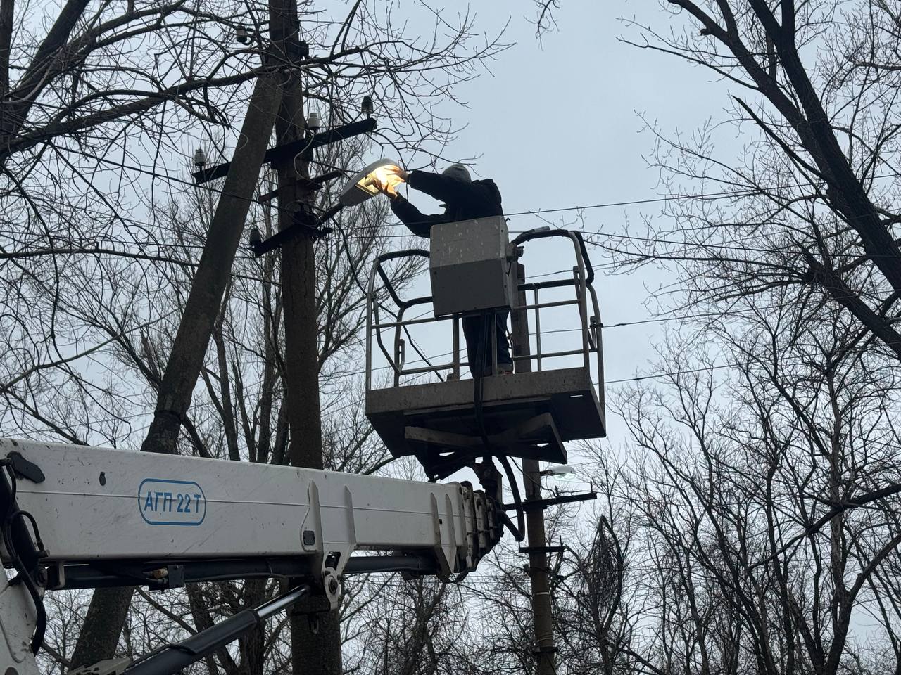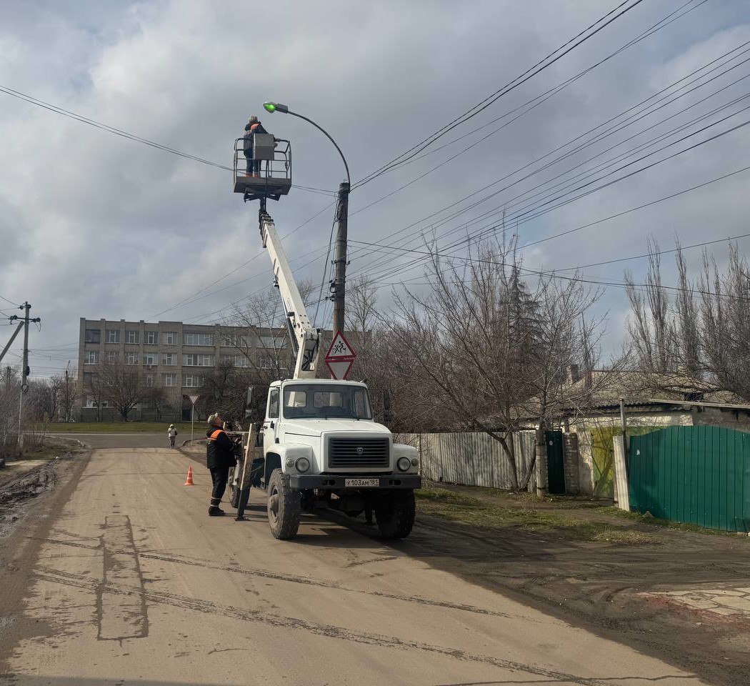 Специалисты МУП «ДЭУ» проводят плановые работы, а также устраняют поломки, выполняют замену ламп и восстановление линий наружного освещения на территории населенных пунктов округа. Работы велись в Суходольске и Краснодоне.