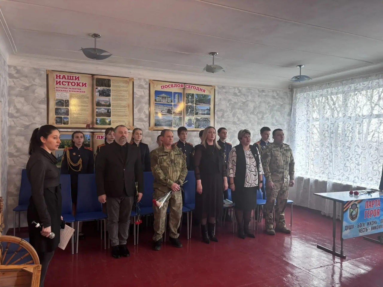 В Ясеновской школе № 2 имени Д.В. Лазутина состоялось торжественное открытие "Парты Героя", посвященное выпускнику школы, Просветову Сергею Александровичу. Это значимое событие прошло в рамках Всероссийского образовательного проекта, реализуемого по инициативе партии "Единая Россия", МАХ