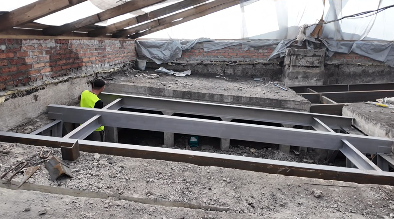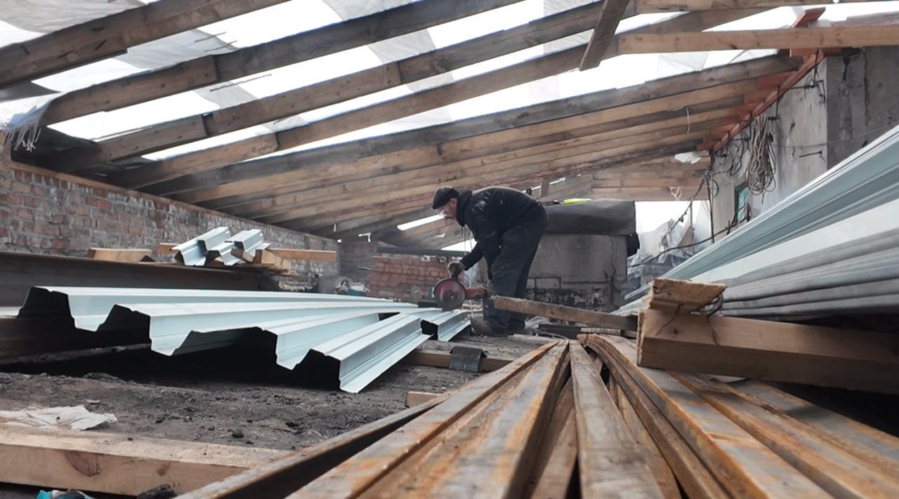 На второй секции кровли многоквартирного дома по адресу: г. Краснодон, кв. Советский, 1 ведутся подготовительные работы для замены аварийных плит перекрытия.