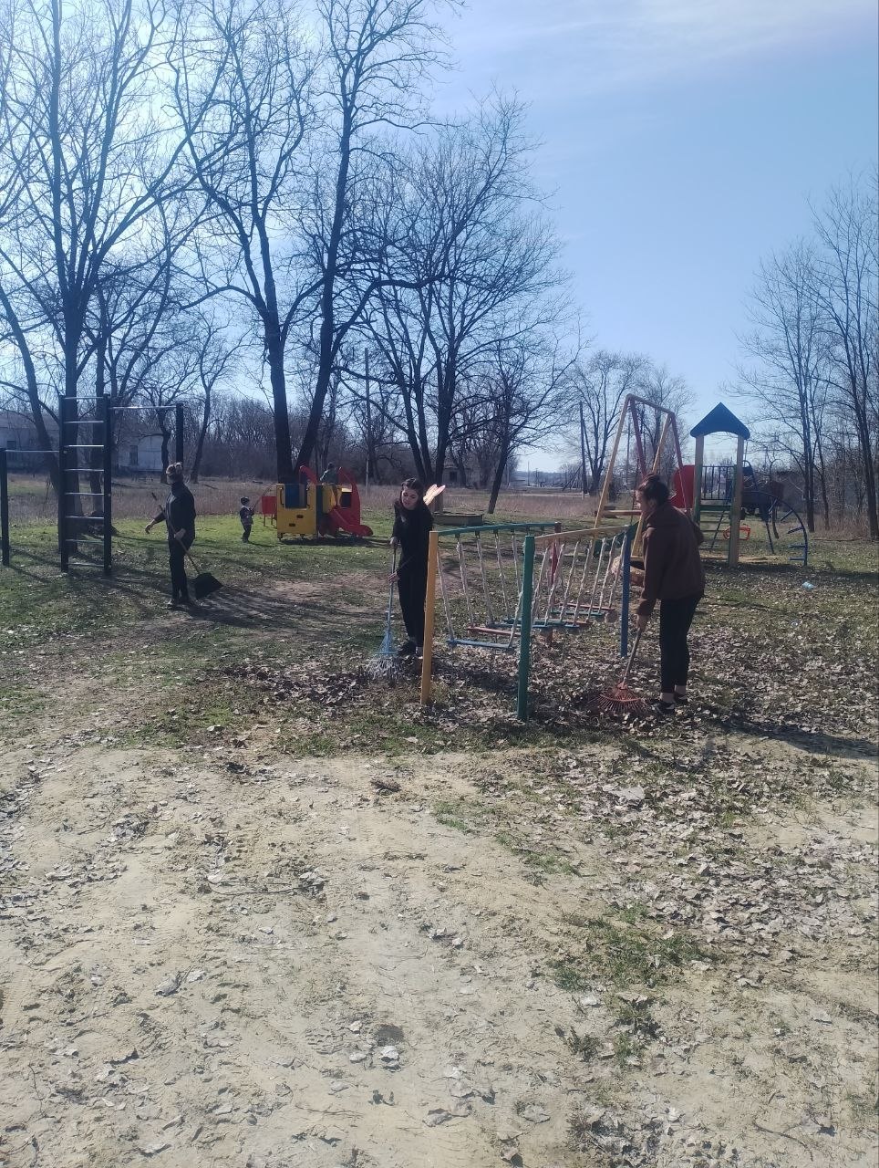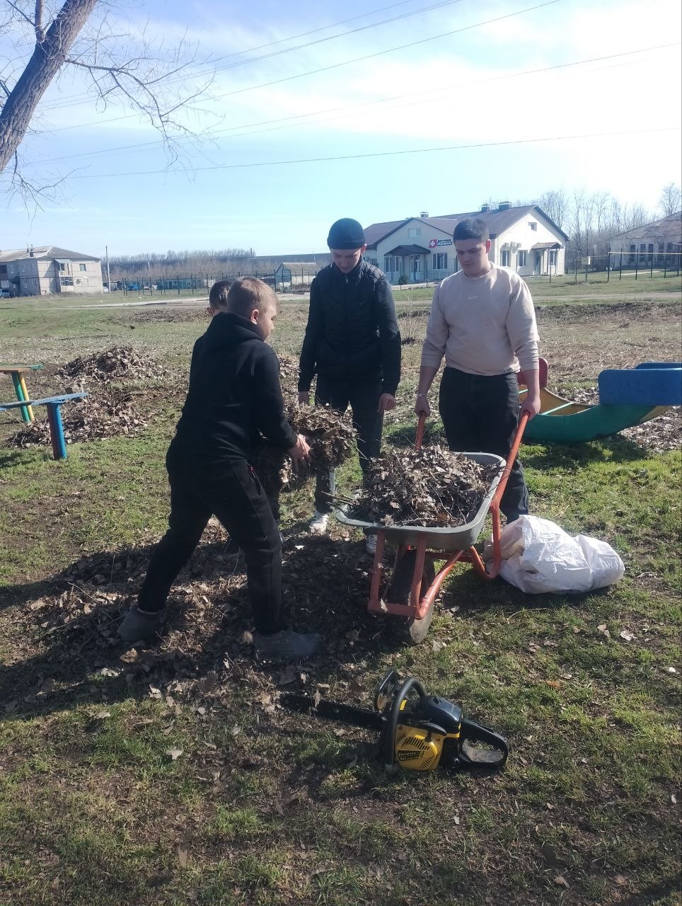 Молодые люди продемонстрировали пример ответственности и неравнодушия к своему родному краю. Они с усердием убирали опавшие листья, сухие ветки, старую траву и накопившийся за зиму мусор. Работа кипела, и вскоре территория детской площадки преобразилась, став чище и уютнее.