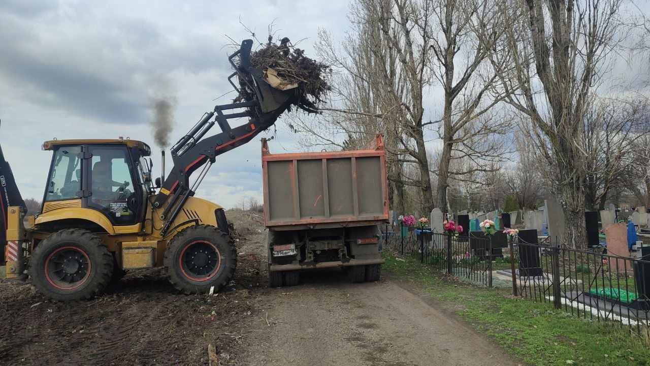продолжают уборку кладбища пгт Ясеновский.