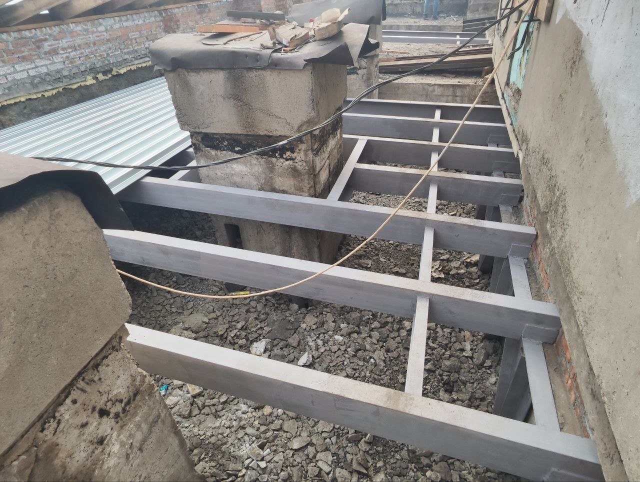 «Они деформировались сильно снаружи, а внутри в основном они целые. Получается, что разрушенная часть - она только сверху. Будем делать сначала сетку, потом штукатурить, восстанавливать там, где высыпало, замазывать. И будем поднимать выше парапета. Потому что парапет мы подняли, соответственно вентшахты оказались ниже парапета. Мы будем приподнимать их кирпичом».