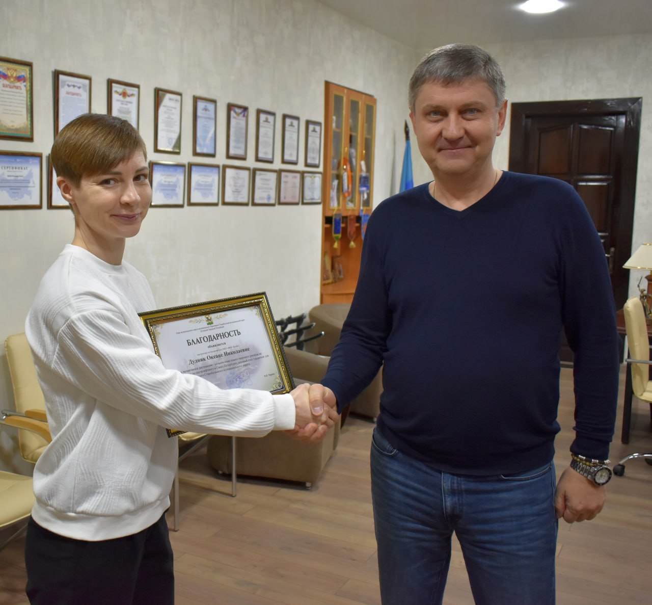 Сегодня имел честь лично вручить благодарность инструктору по пауэрлифтингу МБУ «ФСК «Колос» Оксане Дудник — спортсменке, которая недавно прославила Старобельский муниципальный округ.