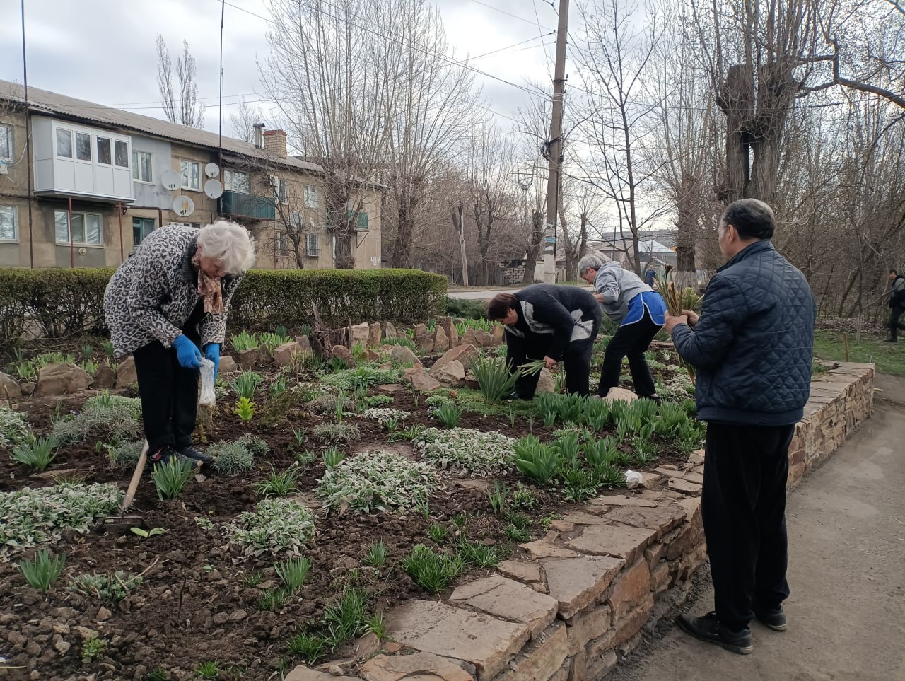 2 апреля участники субботника в количестве 6 человек приняли активное участие в наведении порядка на клумбах.