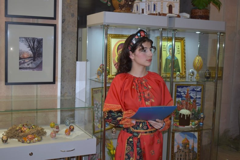 В Свердловском краеведческом музее 3 апреля прошло открытие выставки «Пасхальные перезвоны», приуроченной к Великой Пасхе. На мероприятии присутствовали жители города, ученики 7-х классов ГБОУ «Свердловской СШ № 9».