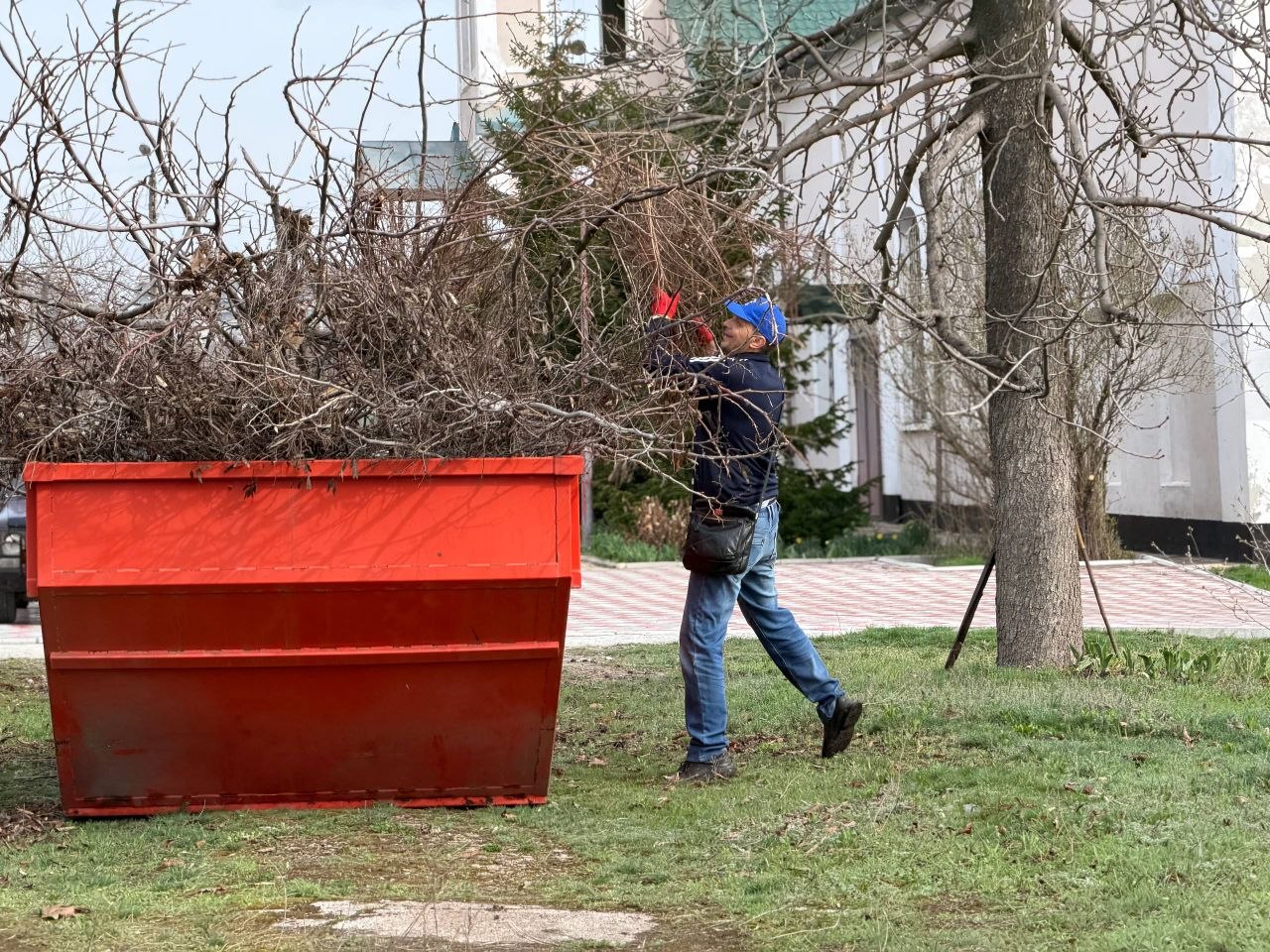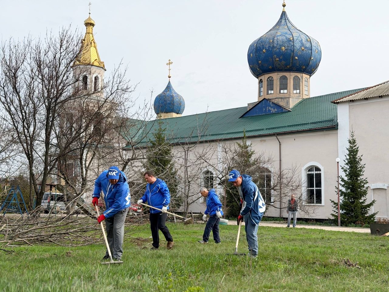 Духовенство и прихожане усердно трудятся, приводя в порядок территорию, заботясь о газонах, зелёных насаждениях и тротуарах.