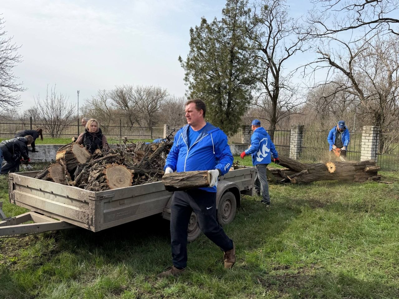 В рамках партийного проекта «Чистая страна» и эстафеты добрых дел «Весна – пора наводить порядки» в уборке приняли участие сторонники и члены партии «Единая Россия», депутаты Совета городского округа во главе с председателем Светланой Пшеничниковой, депутат Народного Совета ЛНР Андрей Губарев. К ним присоединились и наши друзья из Калужской области - представители подрядной организации ООО «КАСКАД ИНВЕСТ».