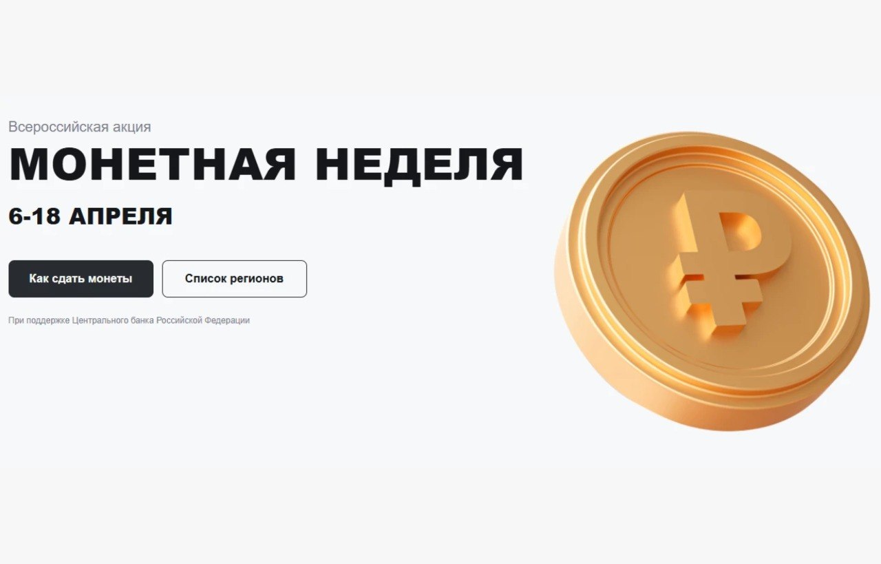 В акции участвуют монеты Банка России, выпущенные с 1997 года. Можно сдать любые монеты, находящиеся в обращении, даже если денежный знак потемнел, поцарапан или погнут. Условия приема могут отличаться в разных пунктах, поэтому с ними нужно заранее ознакомиться на сайте монетнаянеделя.рф. Там же размещены адреса банковских отделений, участвующих в акции.