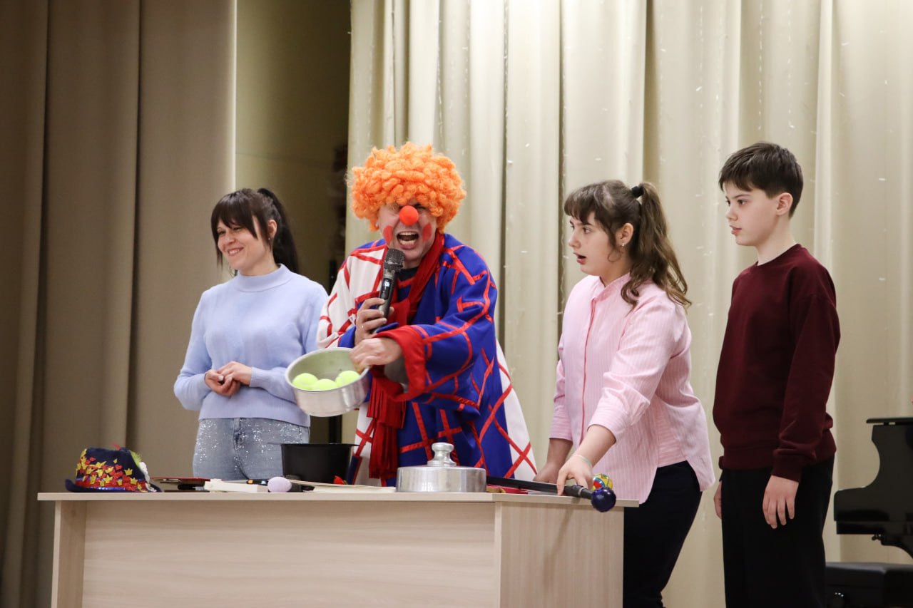 Гвоздём программы стало театрализованное представление. Главные герои — забавные клоуны — с первых минут рассмешили весь зал до слёз. Артисты не давали скучать ни минуты: они активно взаимодействовали с ребятами, приглашали их на сцену, чтобы каждый смог почувствовать себя настоящим артистом. Дети с восторгом наблюдали за удивительными смешными фокусами и с удовольствием участвовали в интерактивах. А в конце выступления всем детям и мамам подарили приятные подарки.