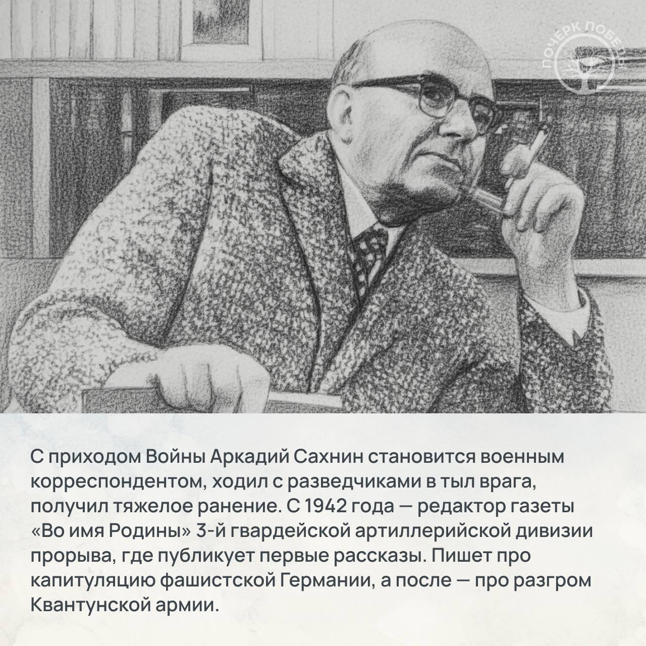 В 40-й главе мы расскажем про Аркадия Сахнина. Его рабочий путь начался на железной дороге в Донбассе, но после учебы в институте юноша стал журналистом. В годы Войны Аркадий Яковлевич в качестве военкора пробирался с разведчиками за линию фронта, но после ранения остался редактором дивизионной газеты.