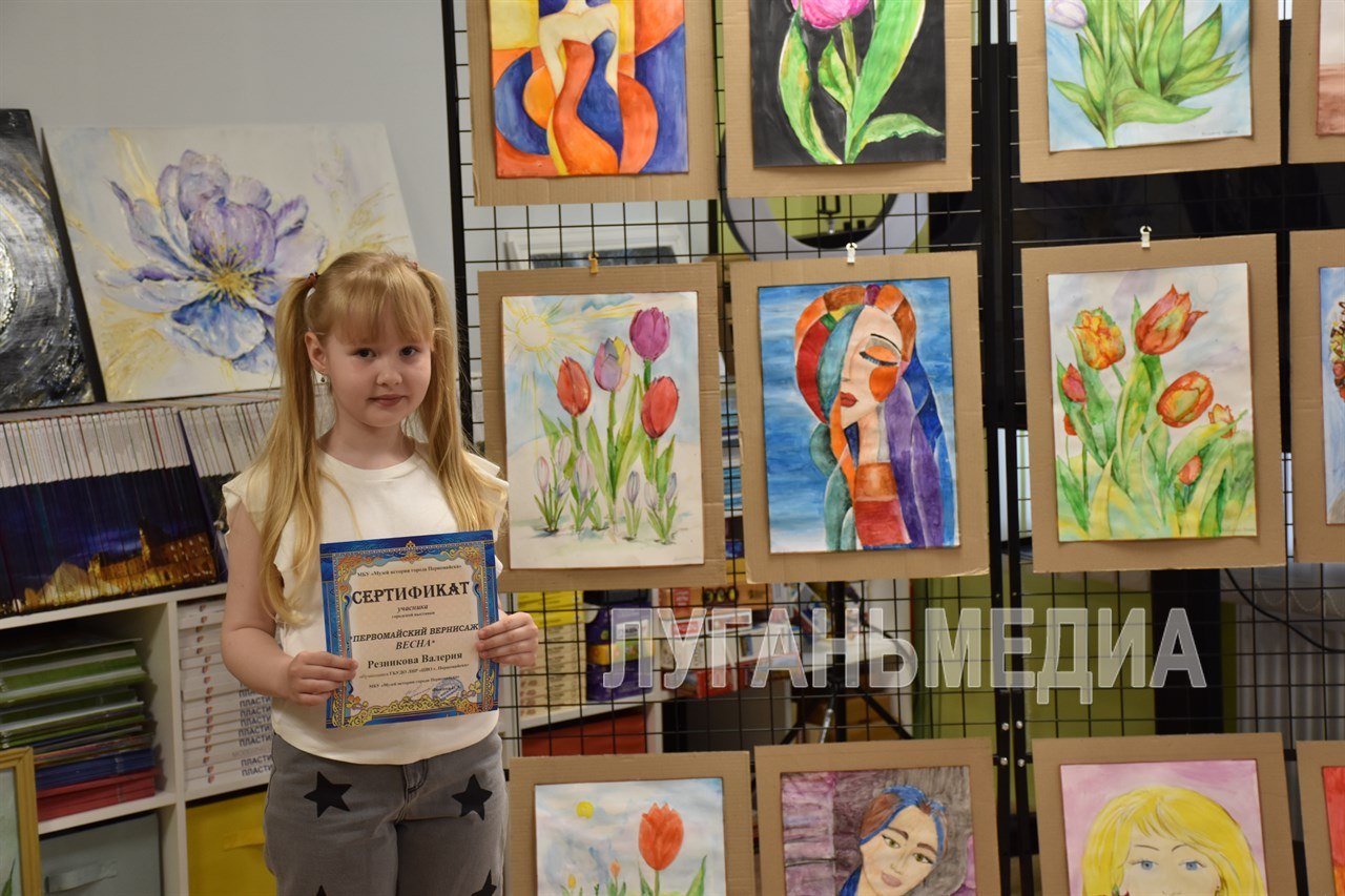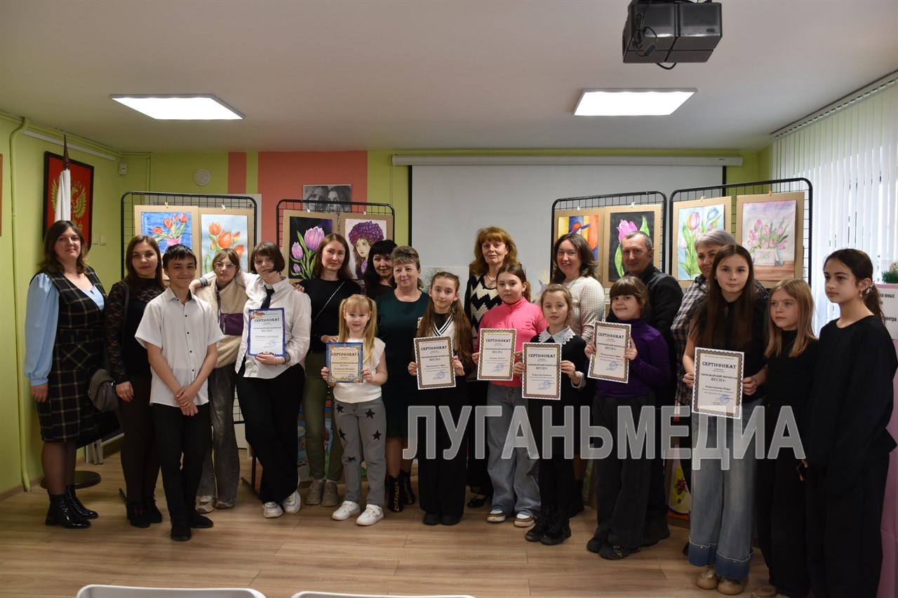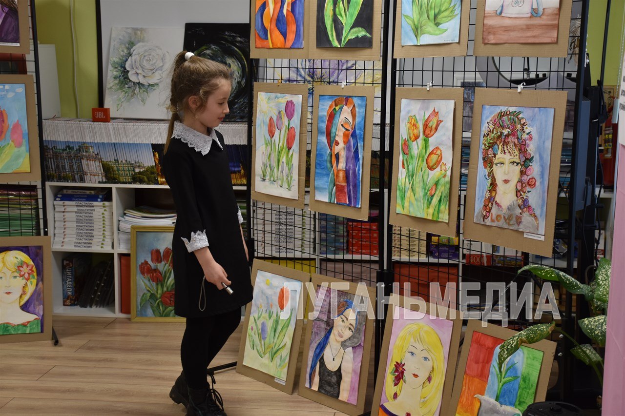 О своем творчестве рассказала сама художница Валентина Чупина, а затем новые работы презентовали юные таланты. Поддержали их своим выступлением участница финала конкурса «Мини-мисс ЛНР 2026» Камила Королева и певец Тимур Бородкин с подтанцовкой.