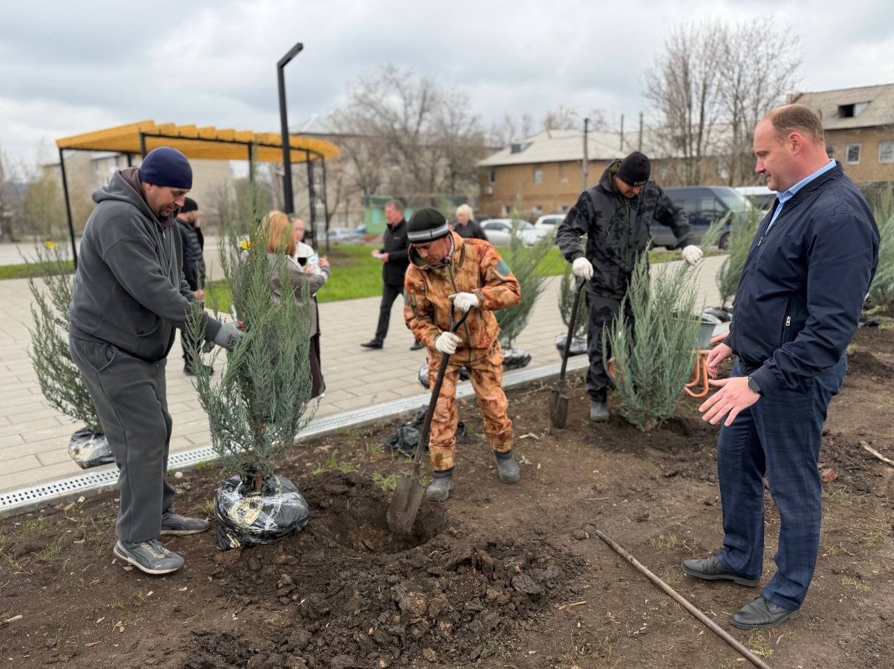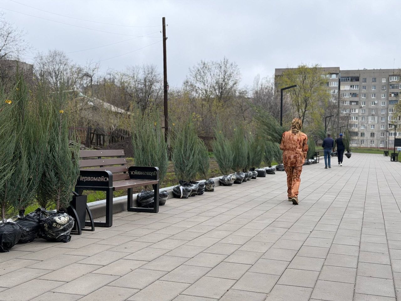 К благоустройству присоединилось и Муниципальное унитарное предприятие «Комбинат коммунальных услуг города Первомайска», обеспечив доставку чернозёма для посадки и воду для полива молодых растений.
