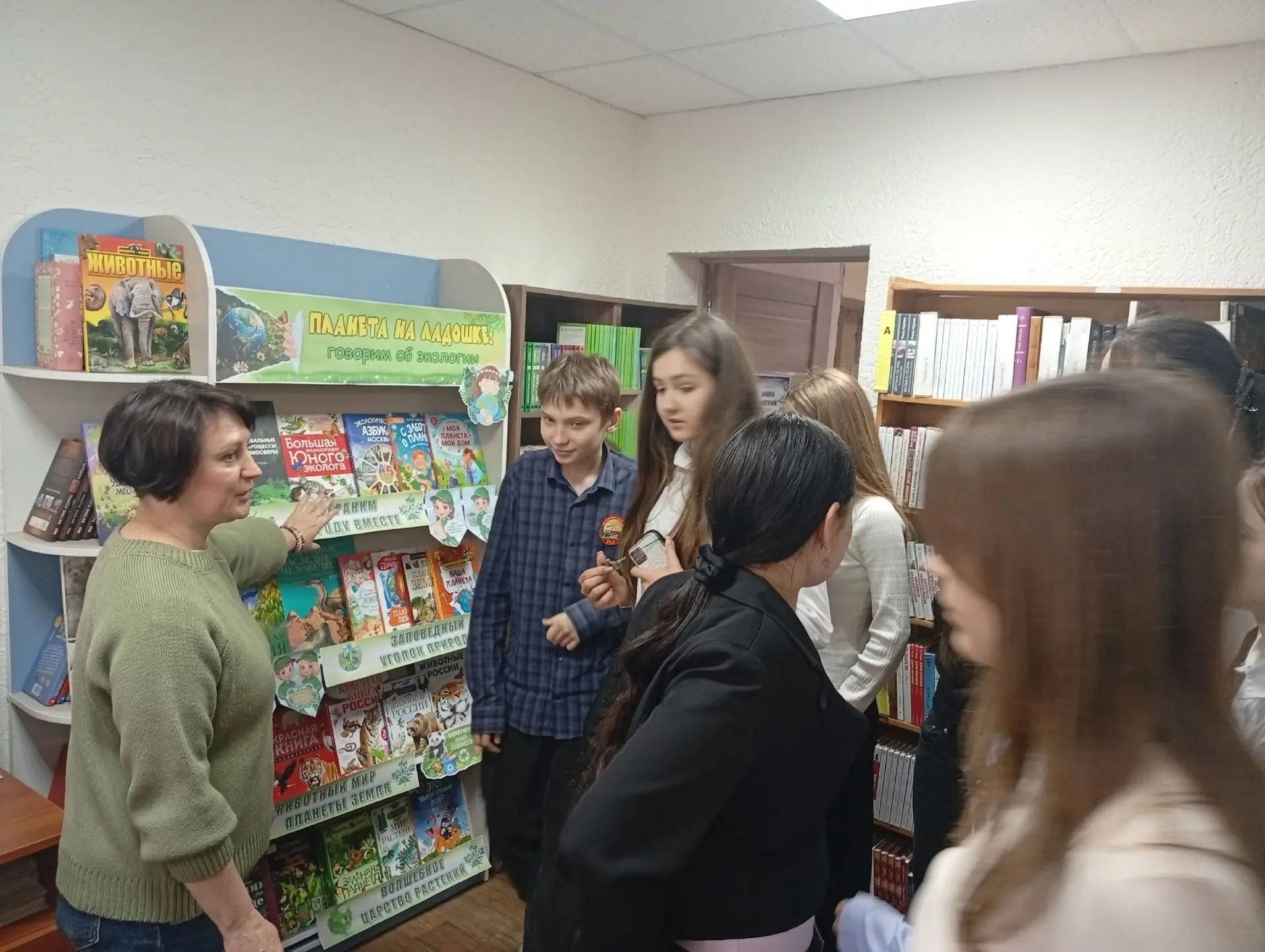 Библиотекарь рассказала современные решения: зелёную энергетику, переработку отходов, устойчивое развитие. Обсудили какую играет роль молодёжь в решении экологических проблем.