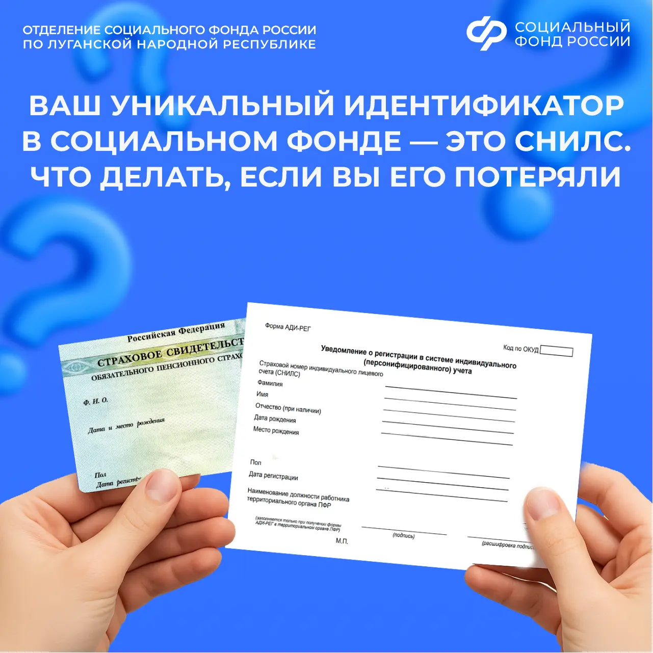 СНИЛС необходим для оформления пенсии, получения социальных выплат и других государственных услуг. Если вы потеряли документ с номером, его можно восстановить в клиентской службе Отделения Социального фонда России по ЛНР. СНИЛС всегда у вас под рукой — в вашем смартфоне на Госуслугах.
