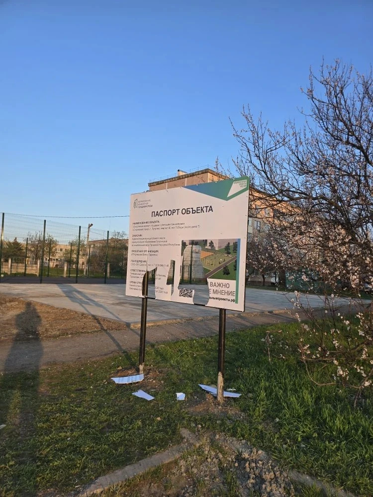 С глубоким сожалением сообщаем о вопиющем случае вандализма, произошедшем в г. Лутугино. Неизвестные уничтожили паспорт объекта благоустройства — стенд, на котором была размещена информация о создании нашей общей гордости: обустройство спортивной воркаут площадки.