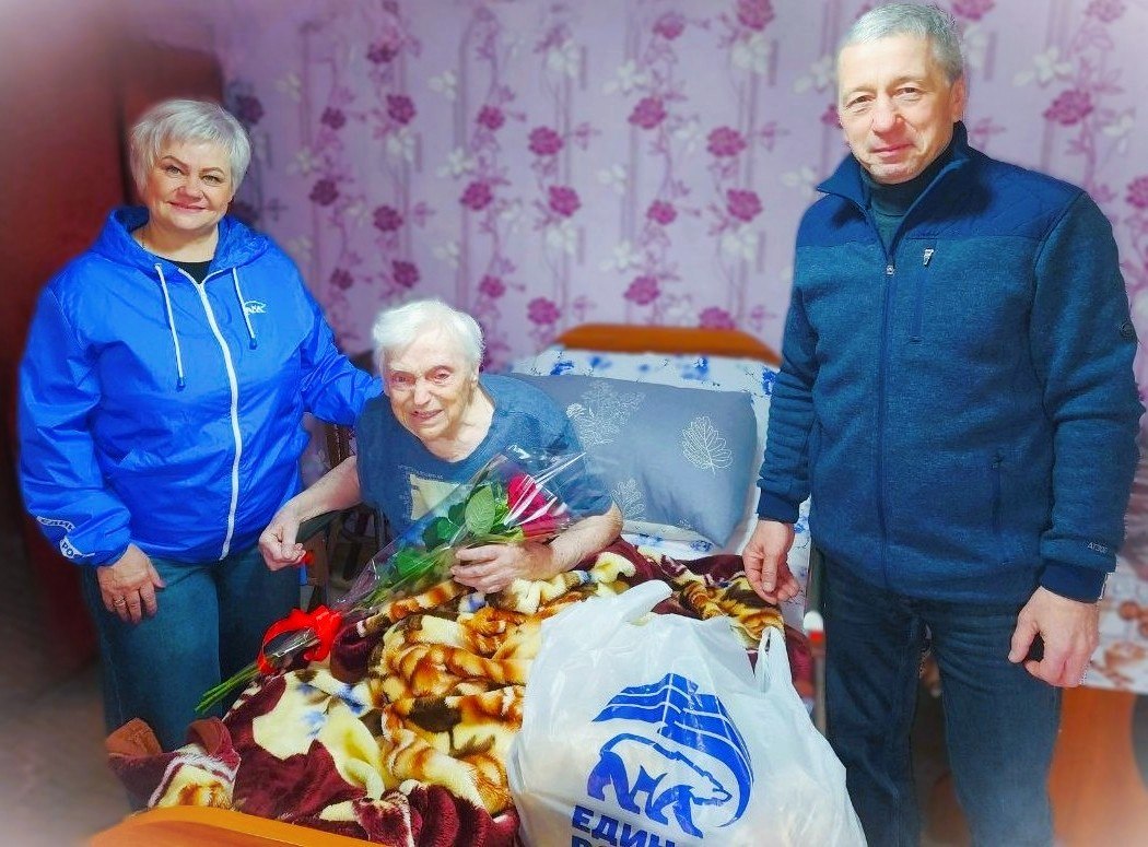 Активисты партии «Единая Россия» во главе с секретарем первичного отделения № 8, начальником ОЖ Владимиром Прапирным, Ириной Донцовой поздравили долгожительницу с этой знаменательной датой.