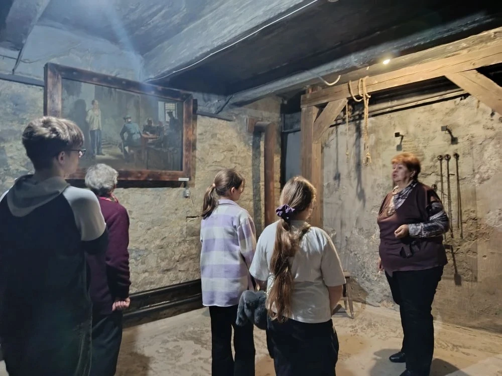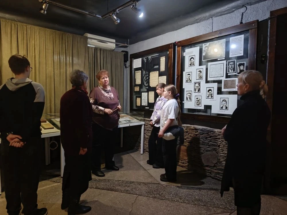 Научный сотрудник Ровеньковского Музея «Памяти погибших» Данилова Татьяна Степановна, провела экскурсию по памятным залам музея и рассказала о подвигах героев во время Великой Отечественной войны о событиях того страшного времени. С 15 июня по 18 июля 1942 года бомбежка города Ровеньки. За четыре дня погибло более двух тысяч граждан. 18 июля 1942 года город Ровеньки был окупирован немецко- фашистскими захватчиками. Гремучий лес стал местом массовых расстрелов мирного населения и узников гестапо. В результате преступных действий нацисткой Германии и ее пособников было замучено и расстрелено в городе Ровеньки 1912человек среди были члены комсомольской молодежной организации «Молодая гвардия» Преступление нацистов на оккупированной советской территории в дальнейшем были признанны геноцидом.