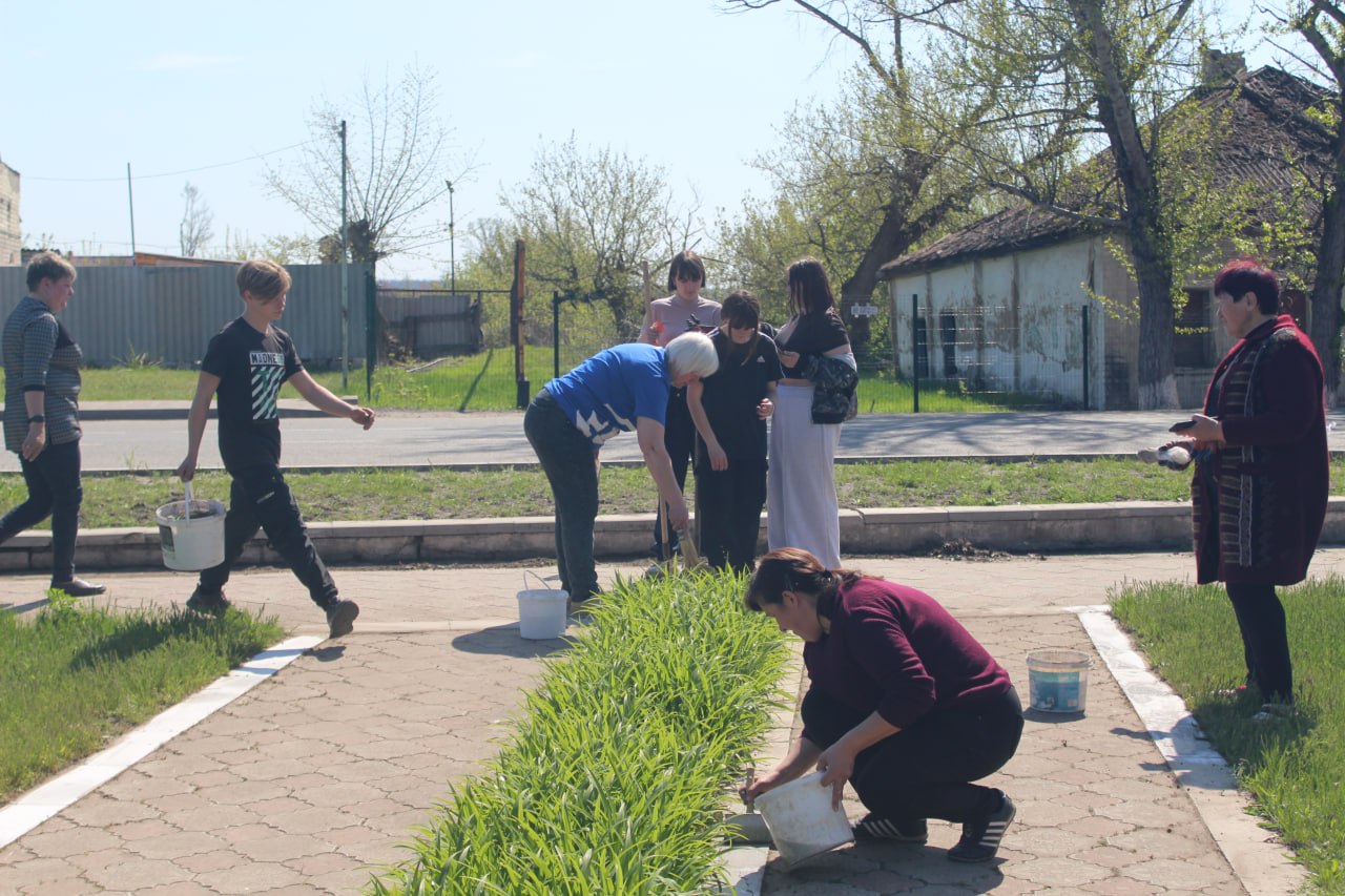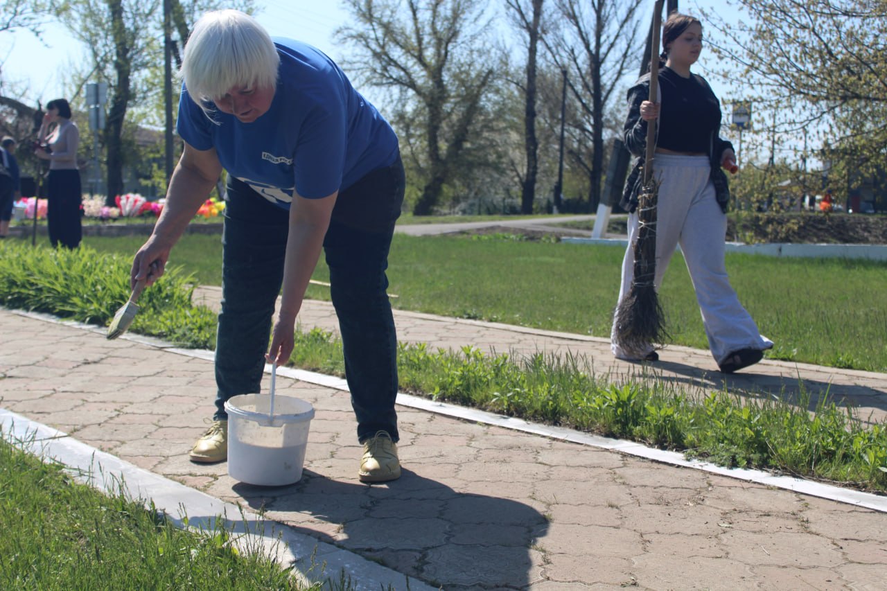 Участники субботника очистили территорию от поросли, убрали мусор и побелили бордюры.