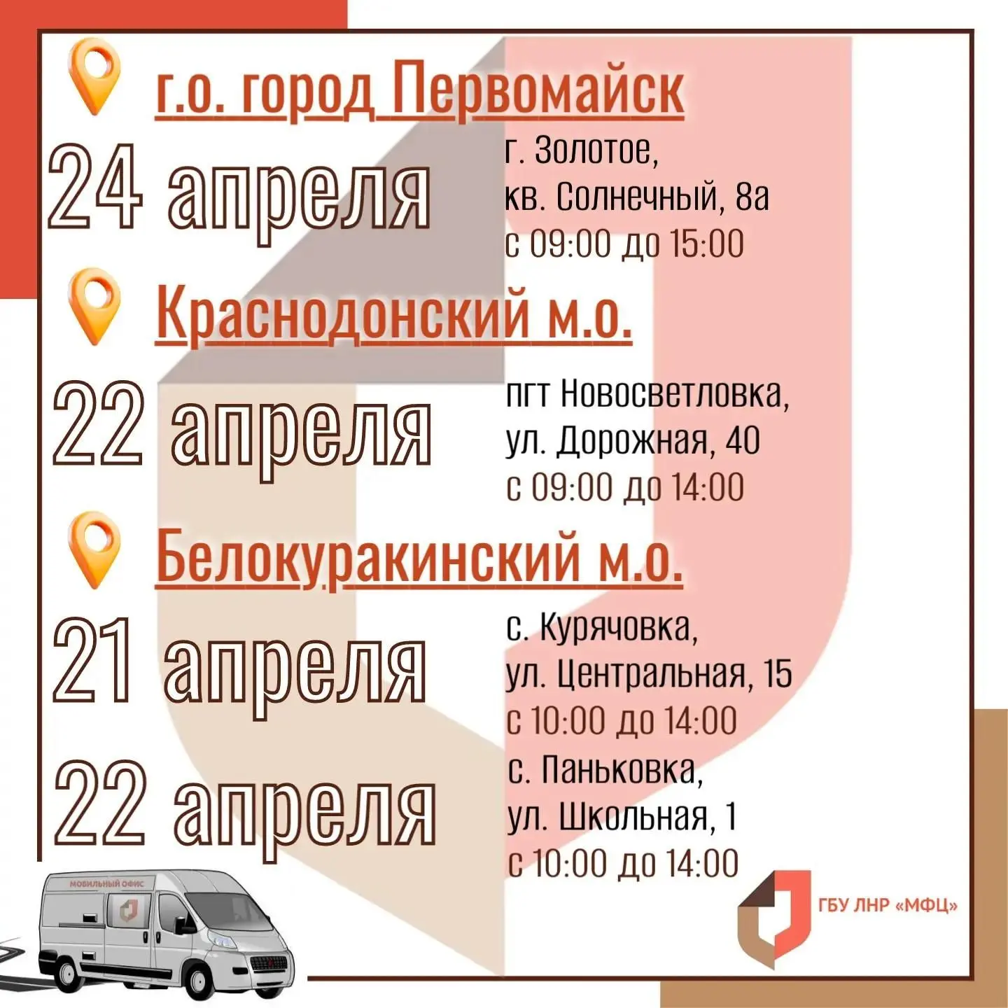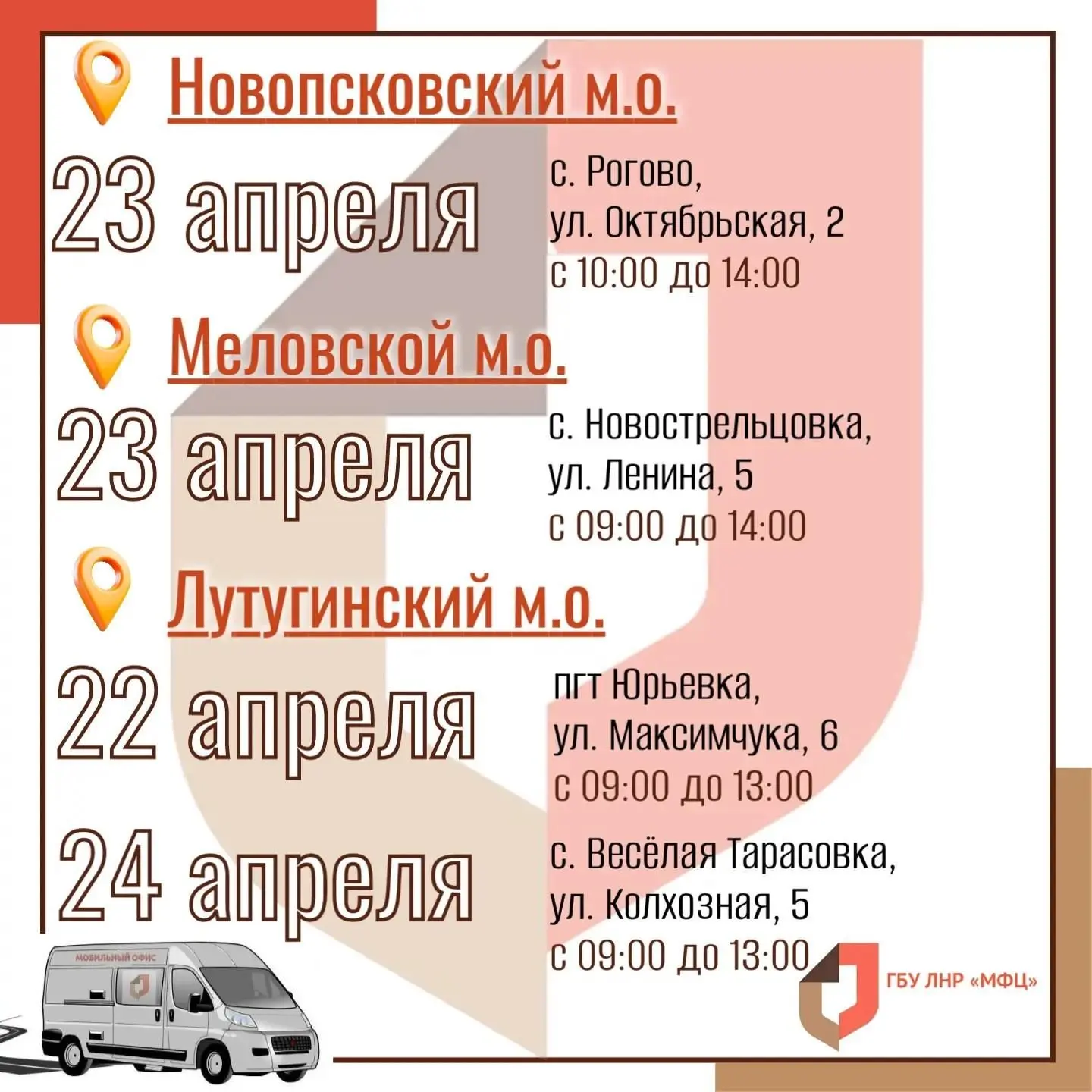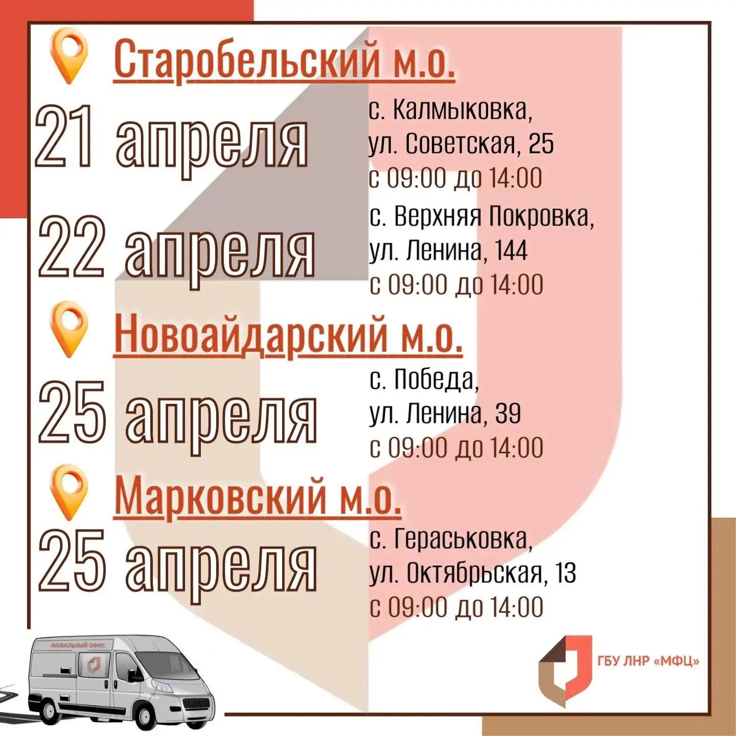 Выездные приёмы мобильного МФЦ ЛНР на предпоследней неделе апреля