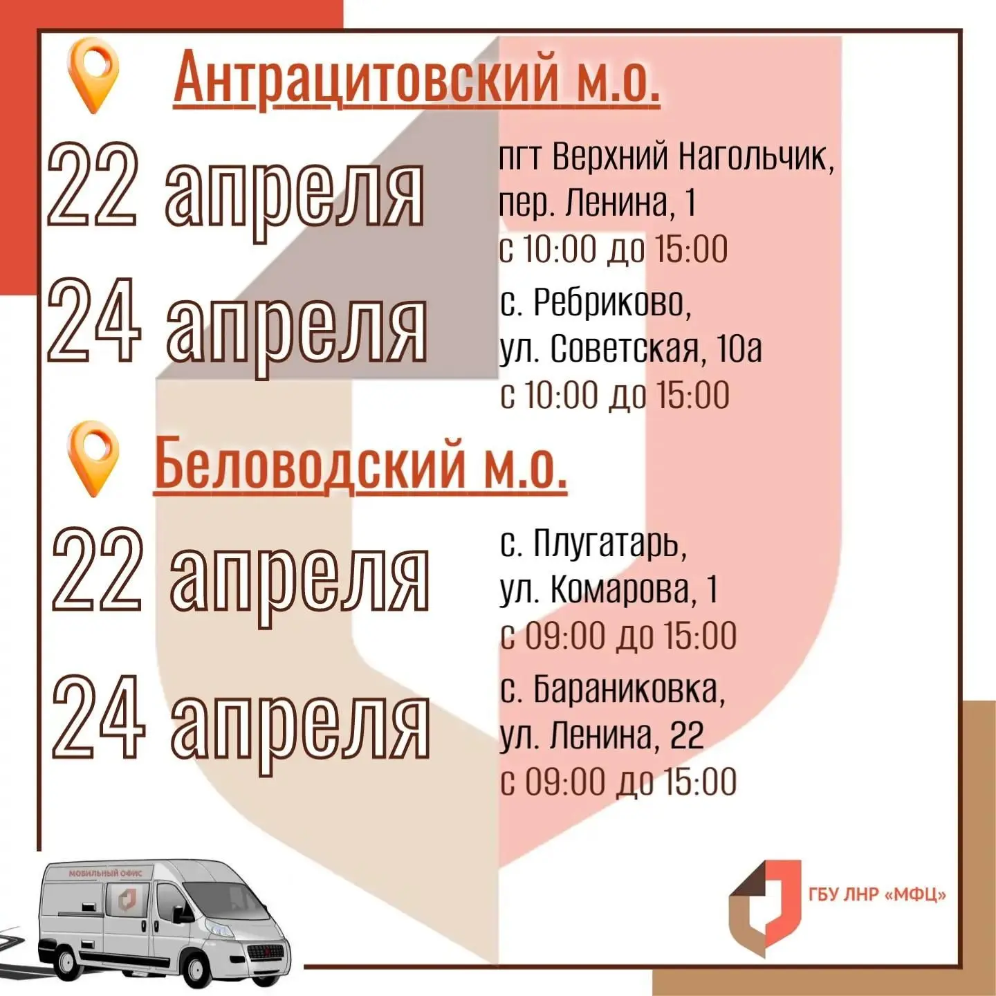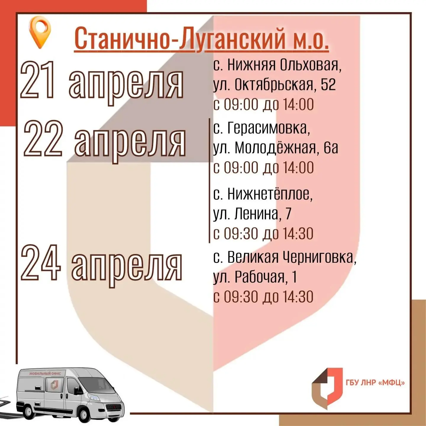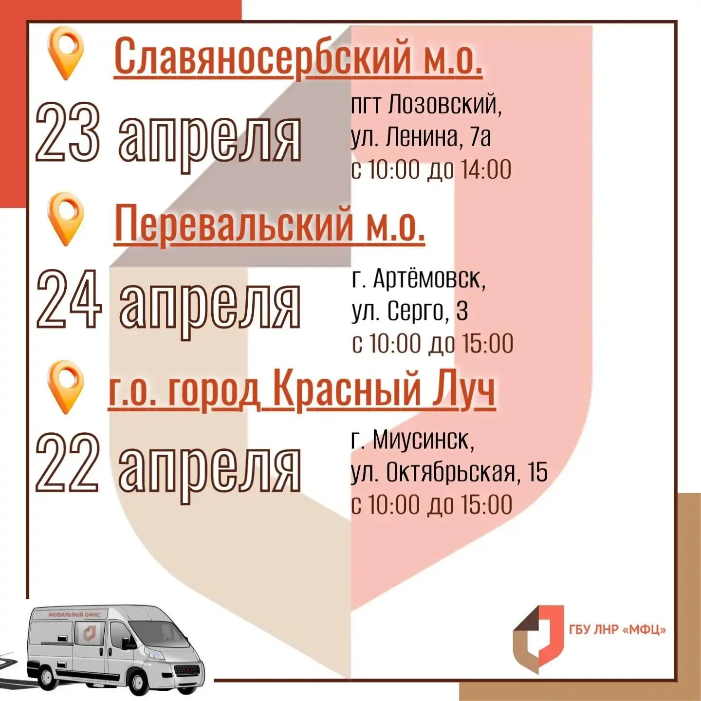 Выездные приёмы мобильного МФЦ ЛНР на предпоследней неделе апреля