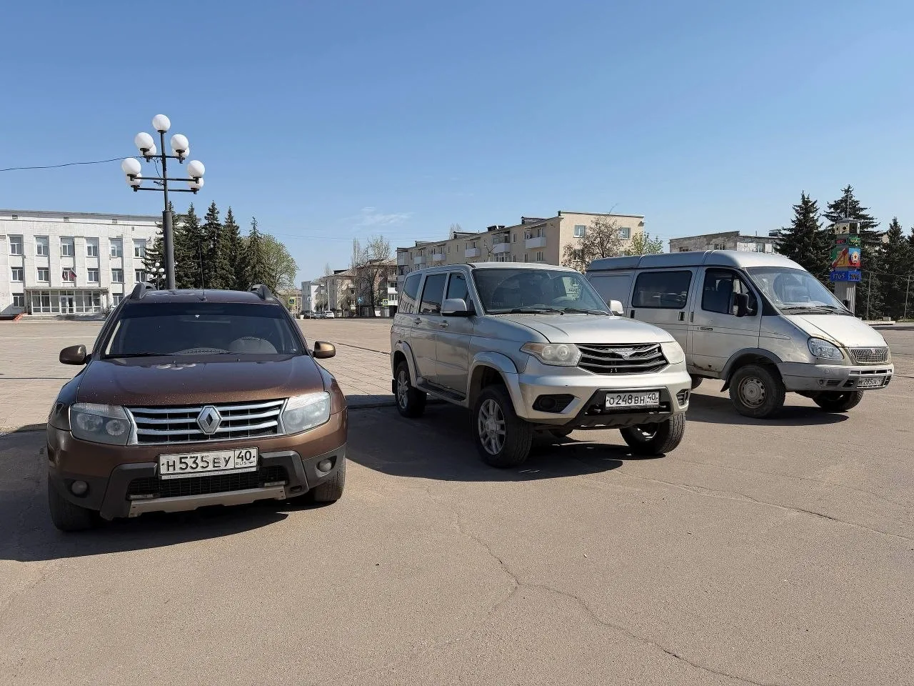 Министр транспорта Калужской области Александр Шпиренко привез в подшефный Первомайск три машины: «Рено», «ГАЗ» и «УАЗ». Автомобили распределят между местными учреждениями и предприятиями.