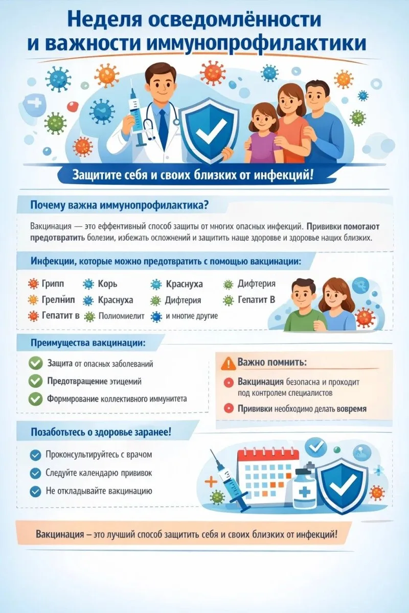 Иммунопрофилактика — это важнейший инструмент в борьбе с инфекционными заболеваниями. Она спасает жизни, предотвращает эпидемии и экономит ресурсы. Важно продолжать работу по повышению осведомленности о ее значимости, обеспечению доступности вакцин и развитию новых технологий в этой области.