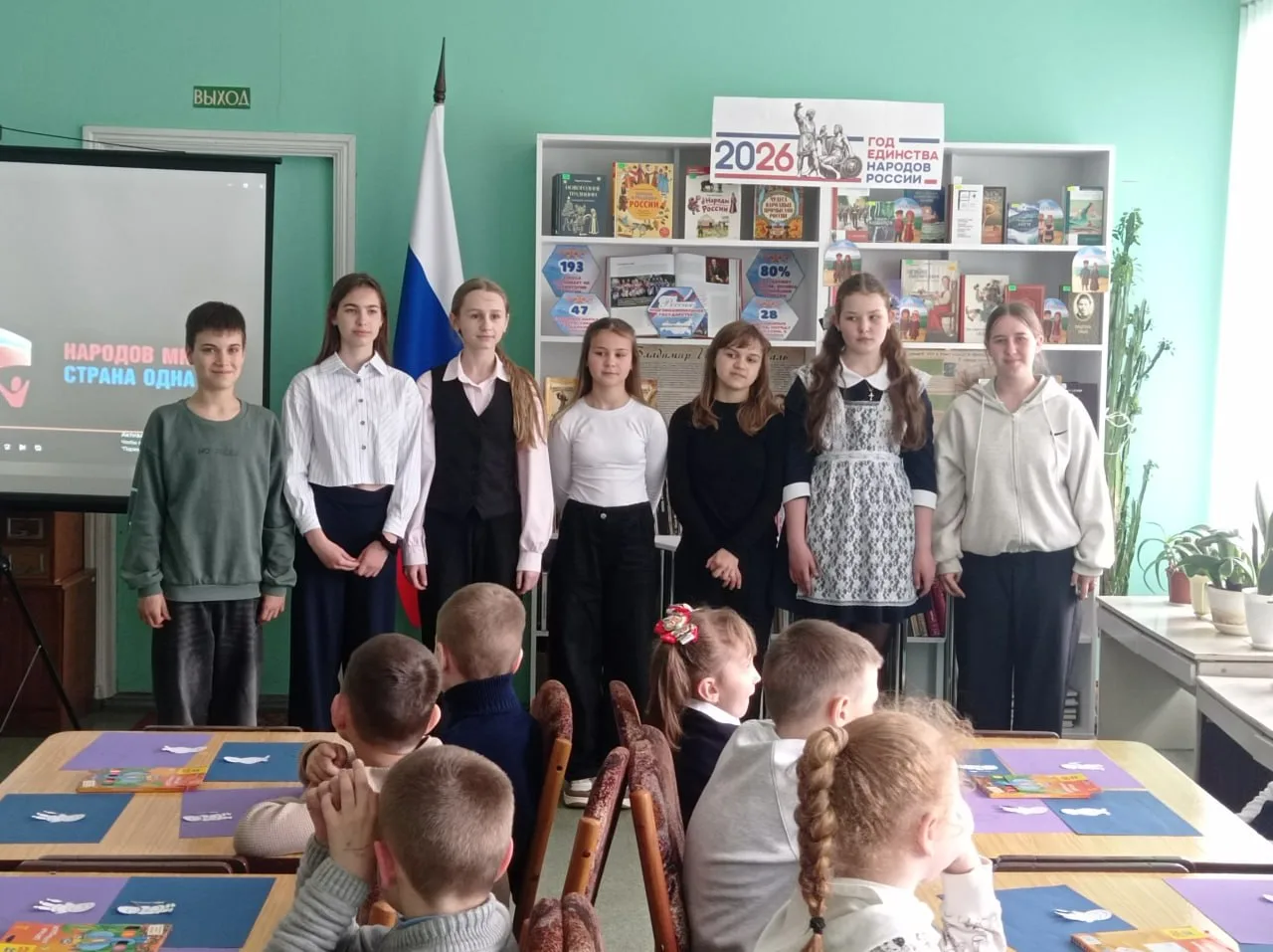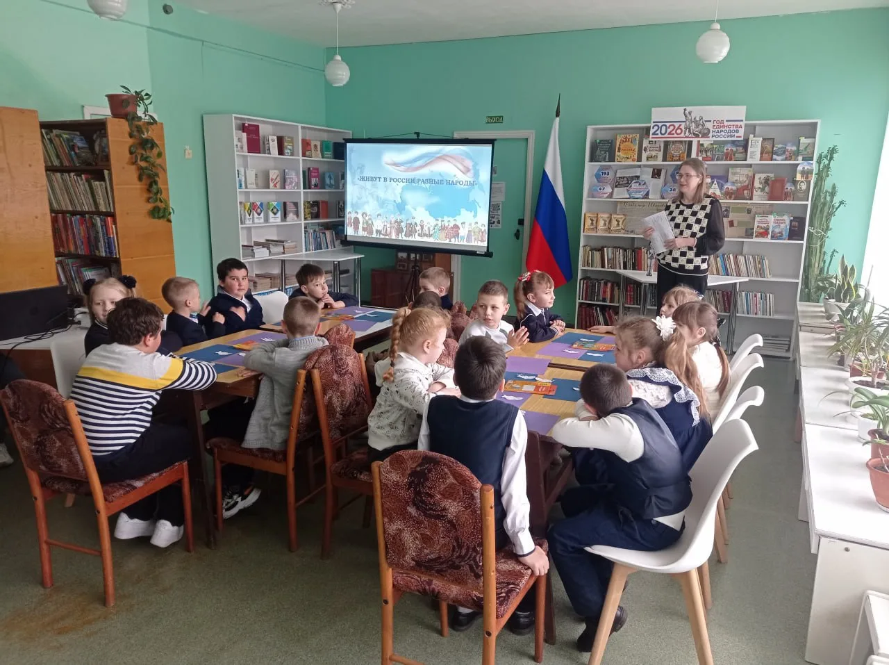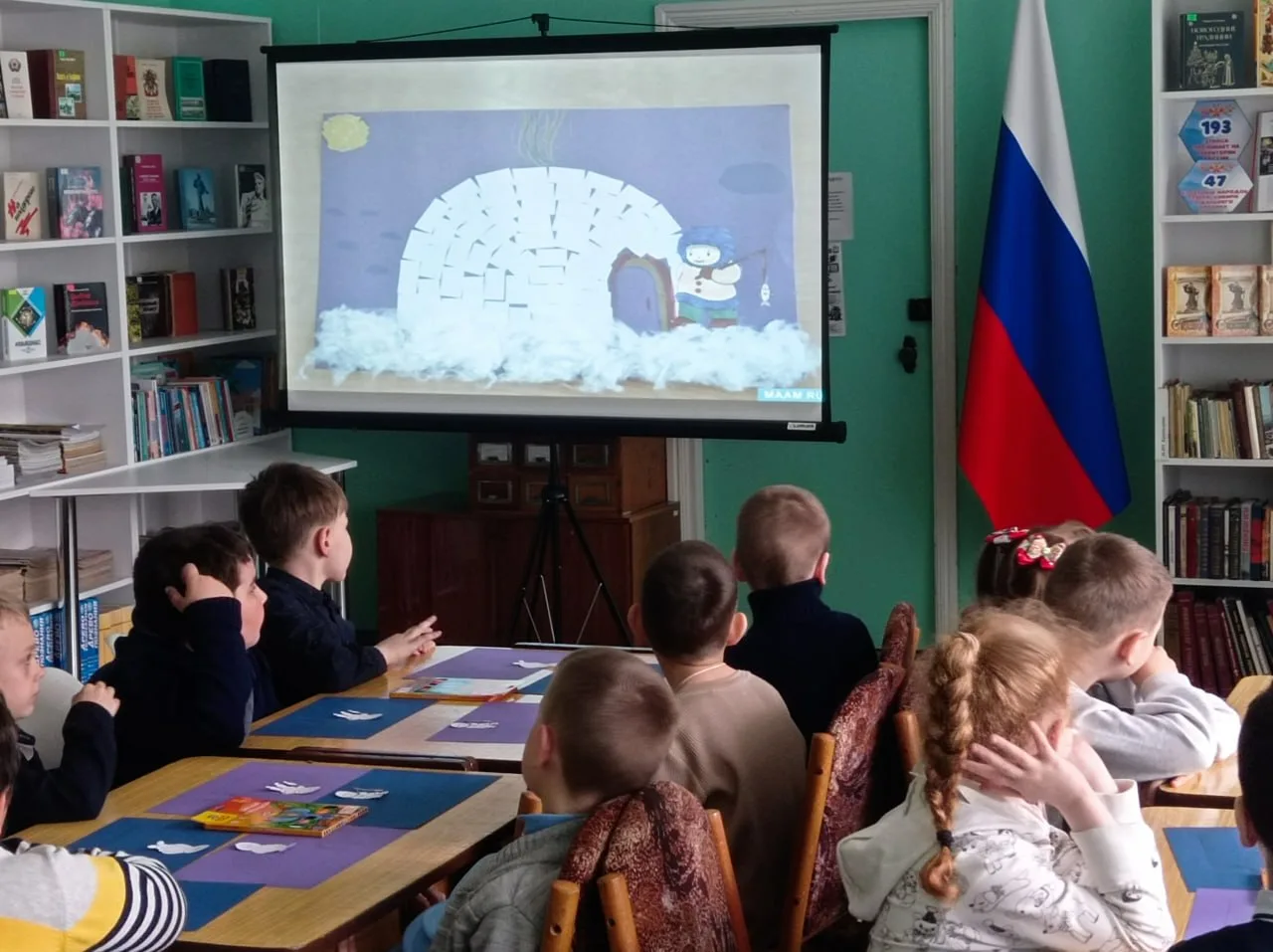 2026 год объявлен в стране Годом единства народов России. Этот год призван напомнить каждому о незыблемых ценностях Родины и единства, поддерживать и уважать друг друга. В рамках этого события, а также ко Дню коренных малочисленных народов России детская библиотека провела кинозал «Живут в России разные народы», посвященный культурному наследию нашей многонациональной страны. Школьники отвечали на вопросы библиотекаря о единстве, можно ли это понятие применить к классу, подбирали одежду для представителей южных и северных народов России