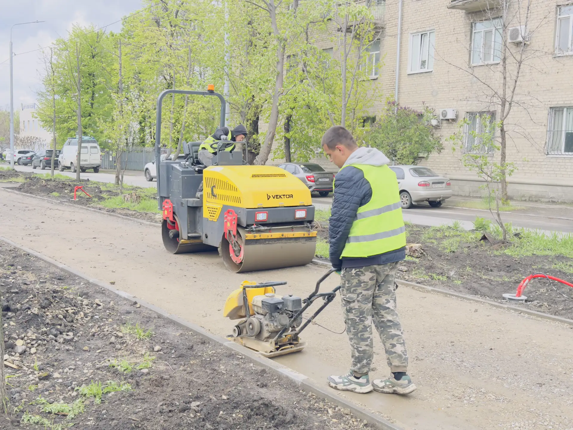 Как рассказал Вадим Квачев, на объекте выполнена замена бортового камня и озеленение, ведется подготовка основания под асфальтобетонную смесь.