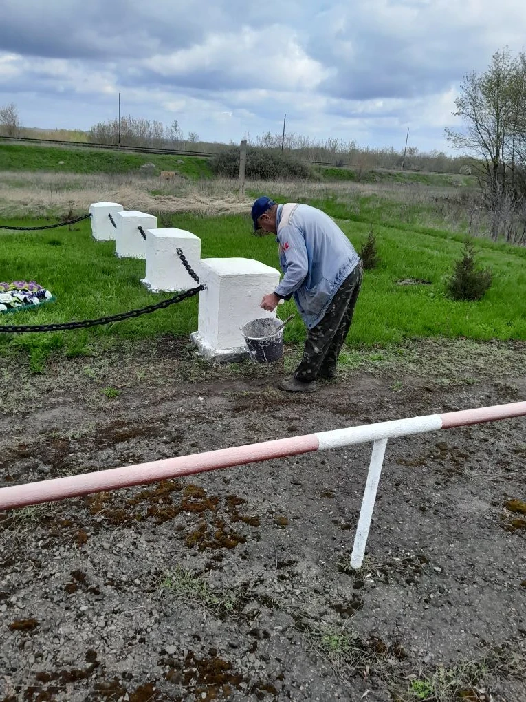В селе Солидарное продолжается благоустройство территории: готовятся к празднованию Дня Победы