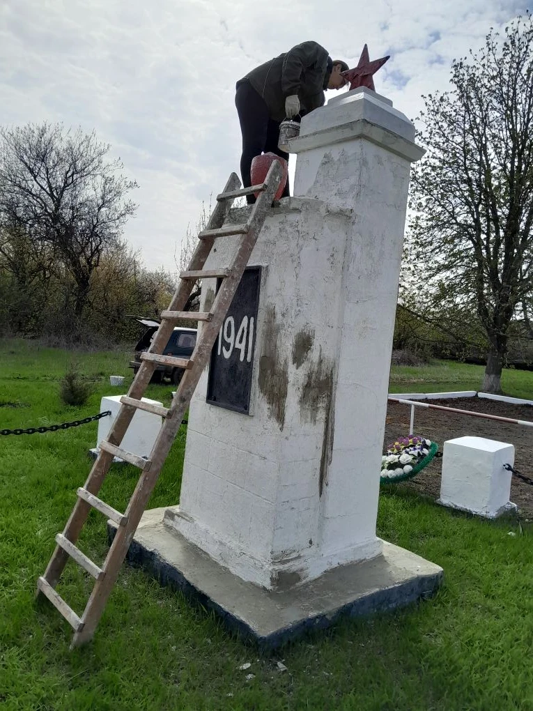 В настоящее время специалисты приступили к ремонту памятника, расположенного в селе. Работы направлены на приведение объекта в надлежащий вид, чтобы достойно встретить один из самых значимых праздников страны. Ремонтные мероприятия включают в себя очистку, покраску и, а также, восстановление отдельных элементов памятника.