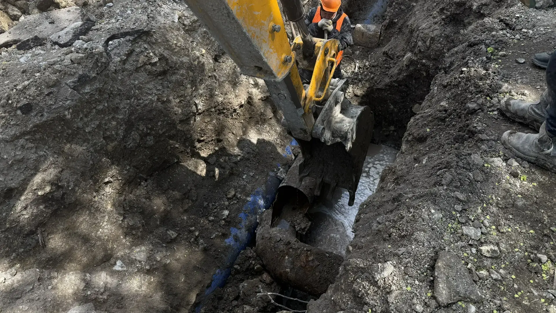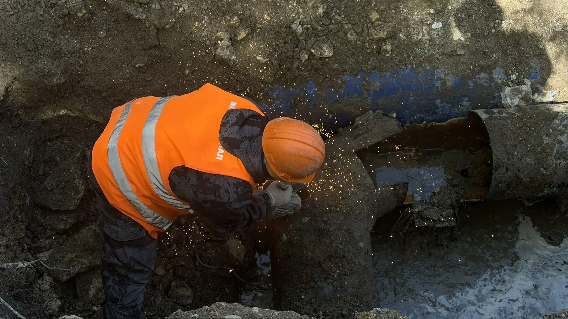 Из-за сложного характера повреждения специалисты "Луганскводы" совместно с «Мосводоканалом» проводят замену отвода трубопровода диаметром 500 мм. На объекте задействована бригада из 6 специалистов и 1 единицы спецтехники.
