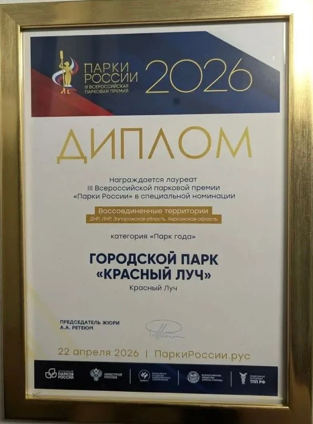 Отличная новость, которая доказывает, что наш округ движется в правильном направлении. Городской парк «Красный Луч» стал лауреатом III Всероссийской парковой премии «Парки России» в номинации — «Воссоединенные территории» (ДНР, ЛНР, Запорожская и Херсонская области).