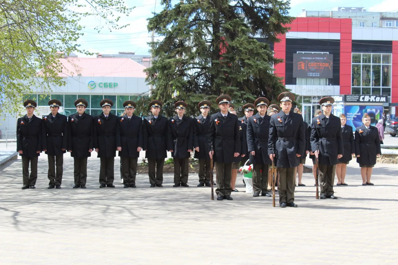 Участники Почетной Вахты Памяти Пост № 1 города Краснодона заступили в почетный караул у памятного знака, отдавая дань уважения героям-ликвидаторам, а также возложили корзину цветов.