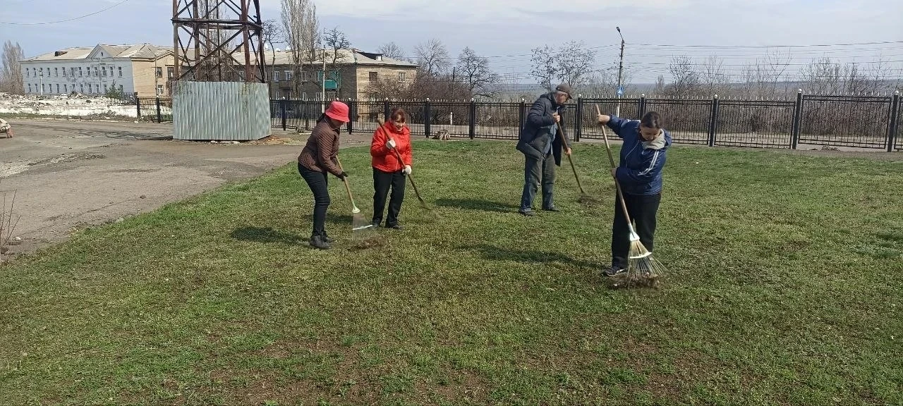 Сотрудники привели в порядок прилегающую территорию на улице Ленина и 395-й Шахтёрской дивизии: выполнили покос травы, уборку мусора и побелку бордюров.