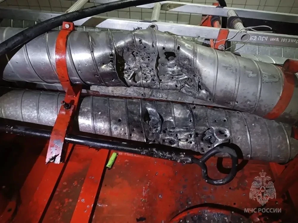 К счастью, сотрудники не пострадали, успев укрыться в безопасном месте. Повреждения получил пожарный автомобиль.